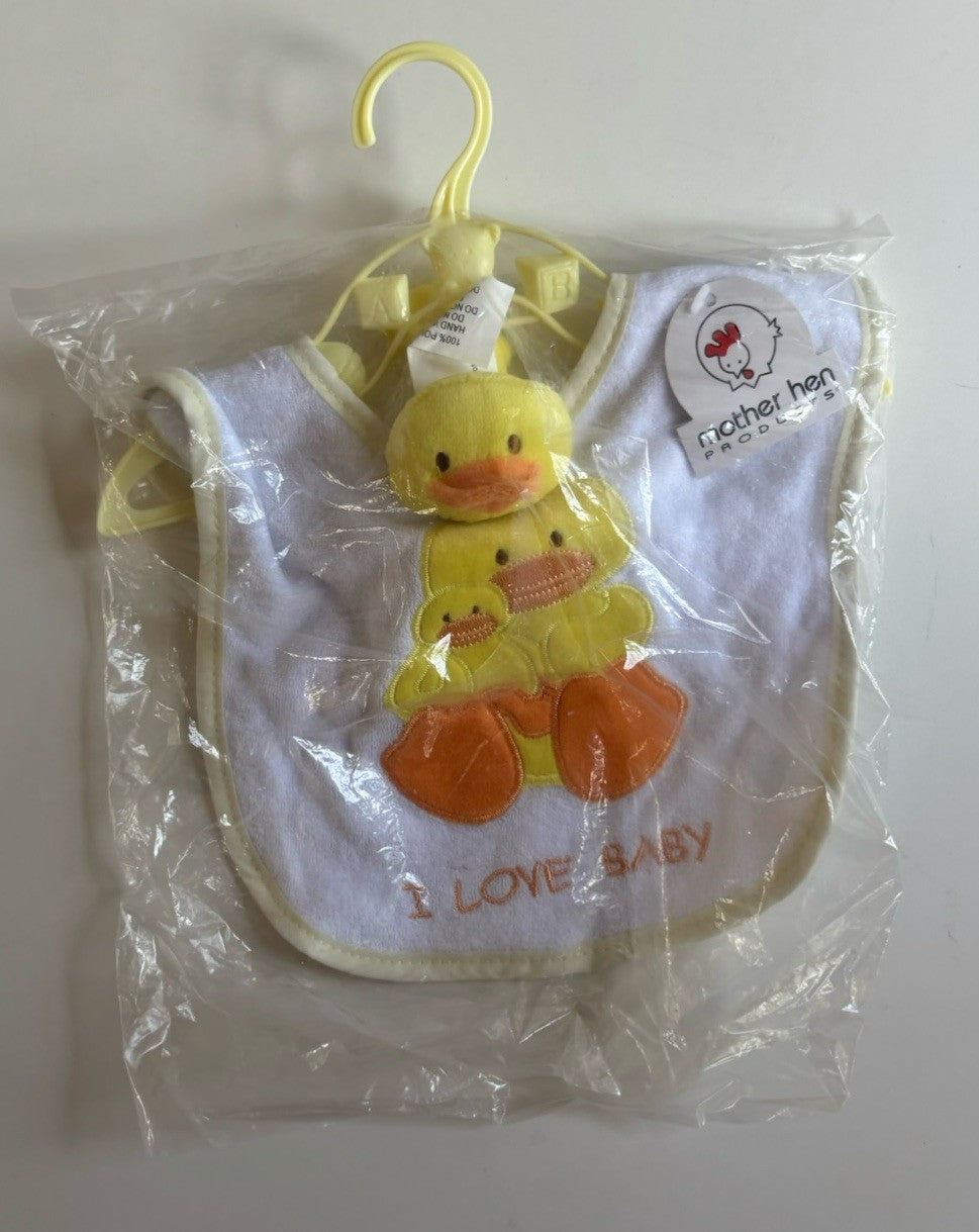 Mother Hen Products baby feeding bib white yellow ducks, BNWT