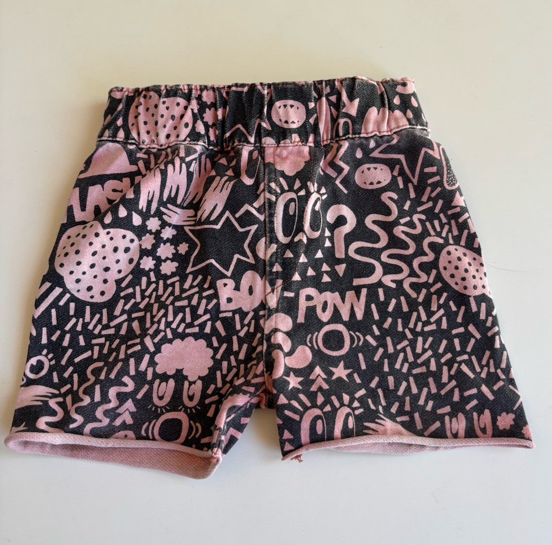 Munster baby boy size 12-18 months pink black patterned shorts, VGUC