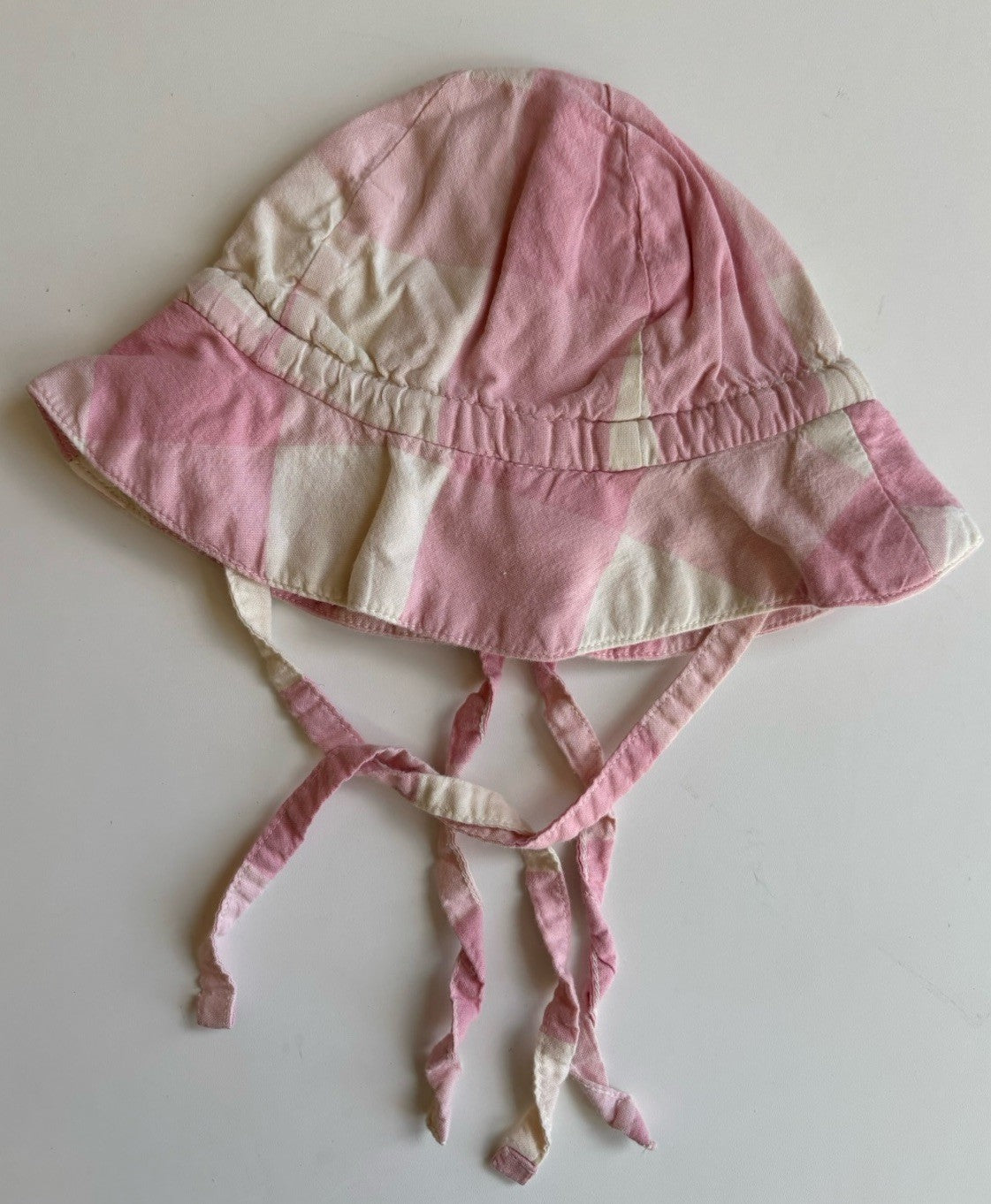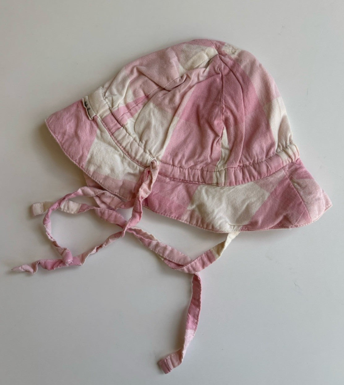 Nature Baby baby girl size small pink white check sun hat, VGUC