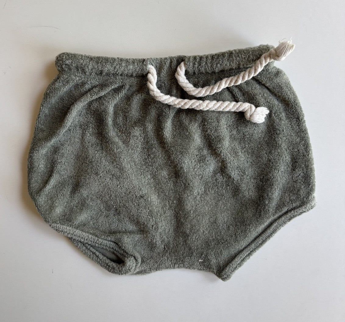 Nature Baby baby size 3-6 months green Terry towelling shorts, VGUC