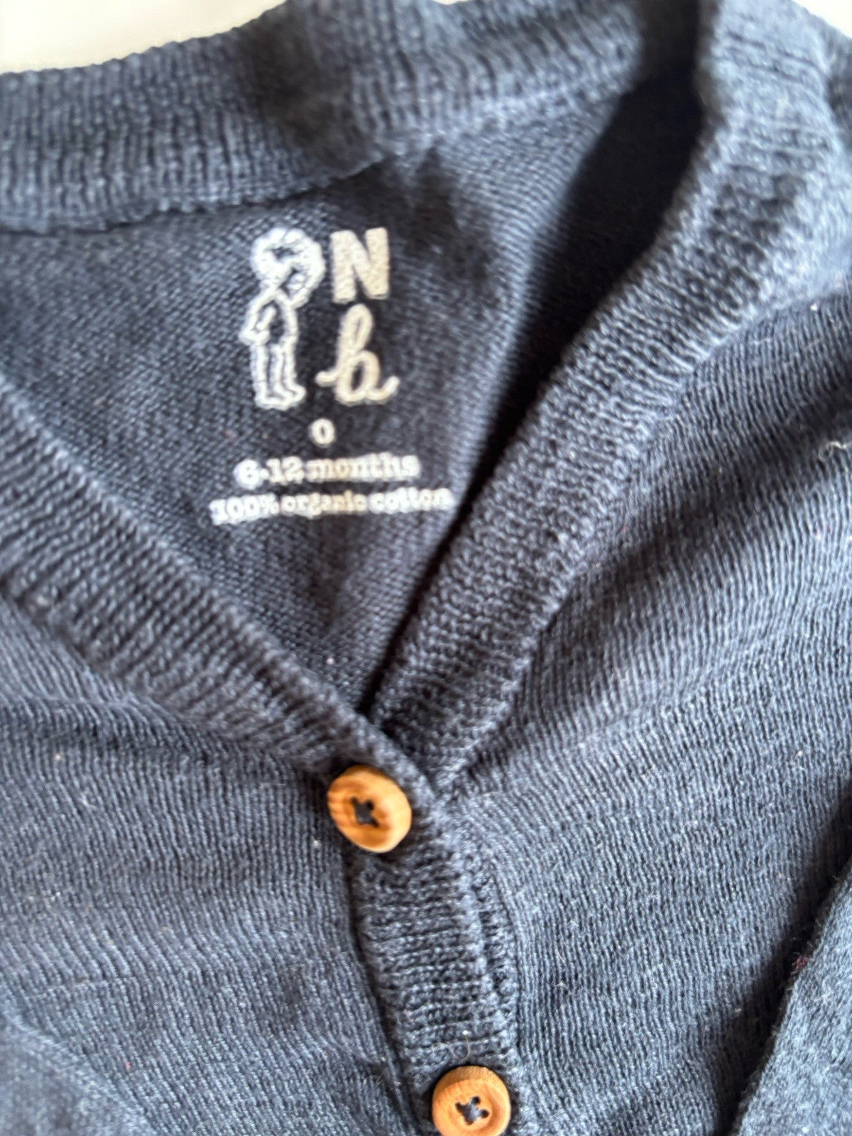 Nature Baby baby size 6-12 months navy blue knitted cardigan jumper, VGUC