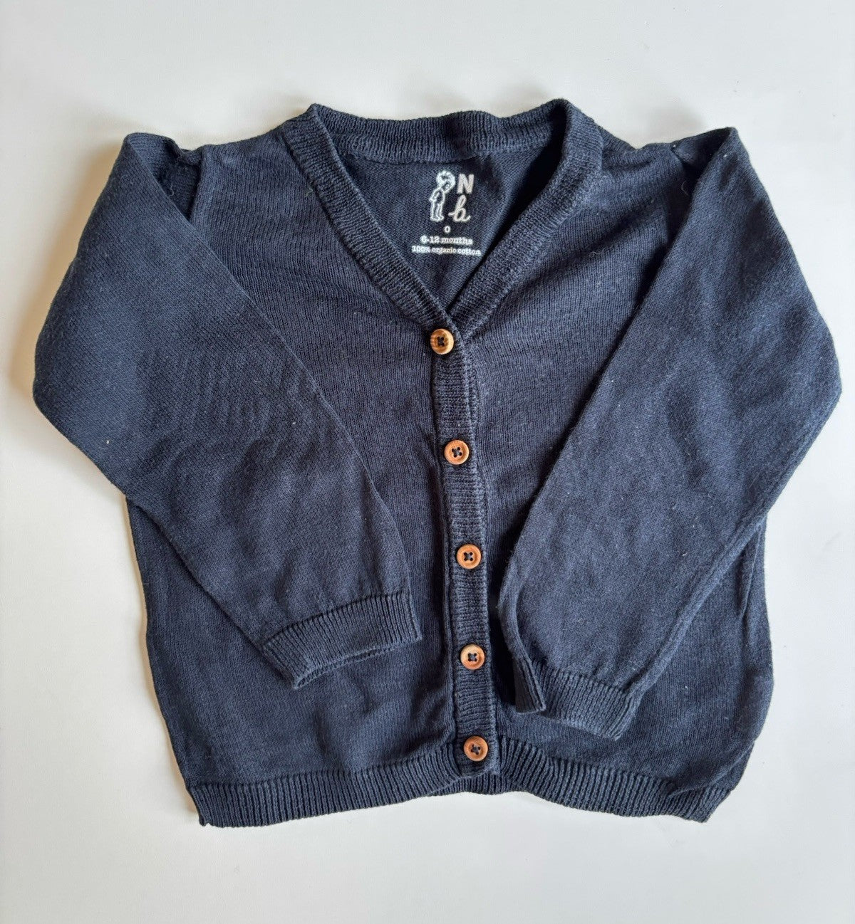 Nature Baby baby size 6-12 months navy blue knitted cardigan jumper, V