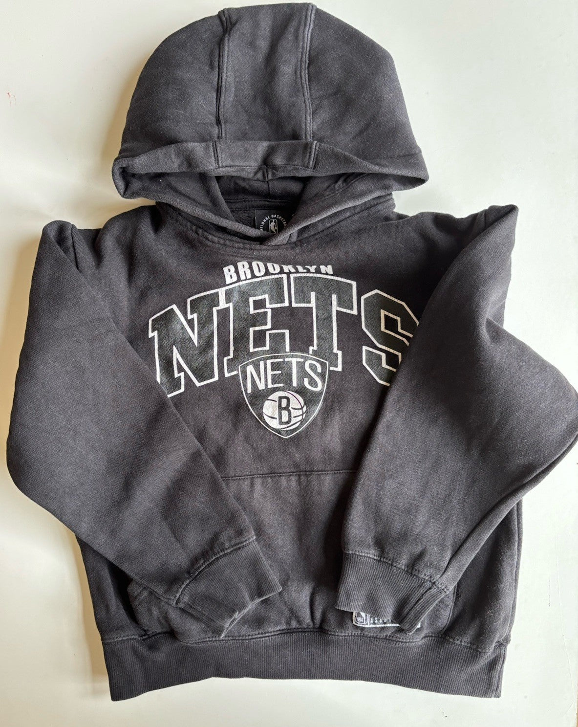 NBA Brooklyn Nets kids size Small 8 years black hooded jumper, VGUC