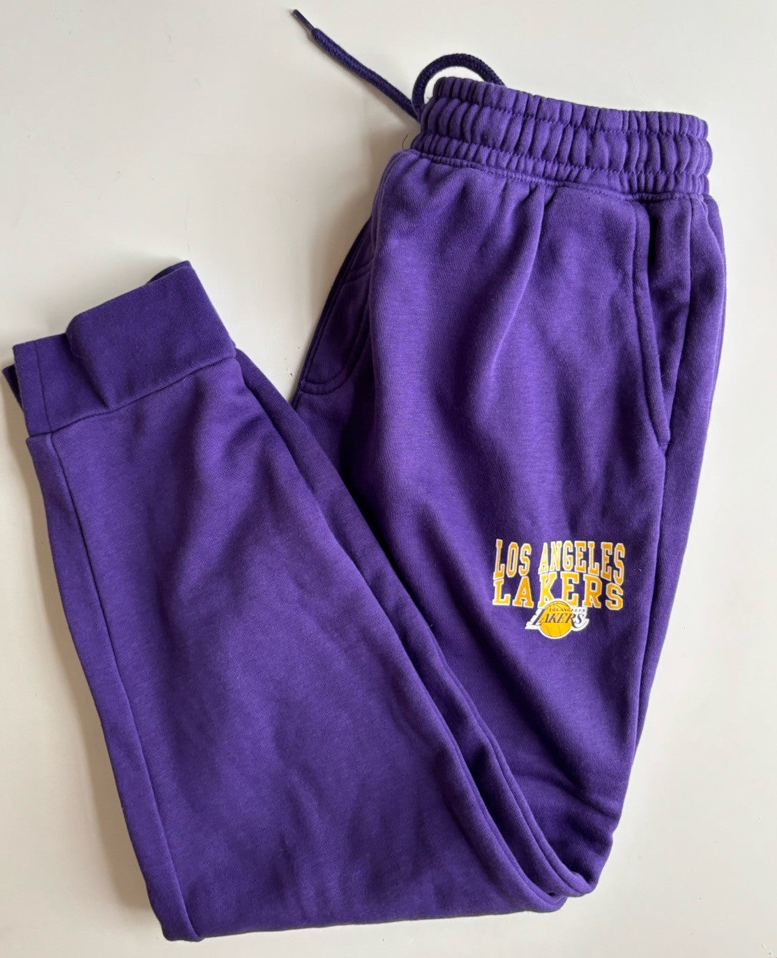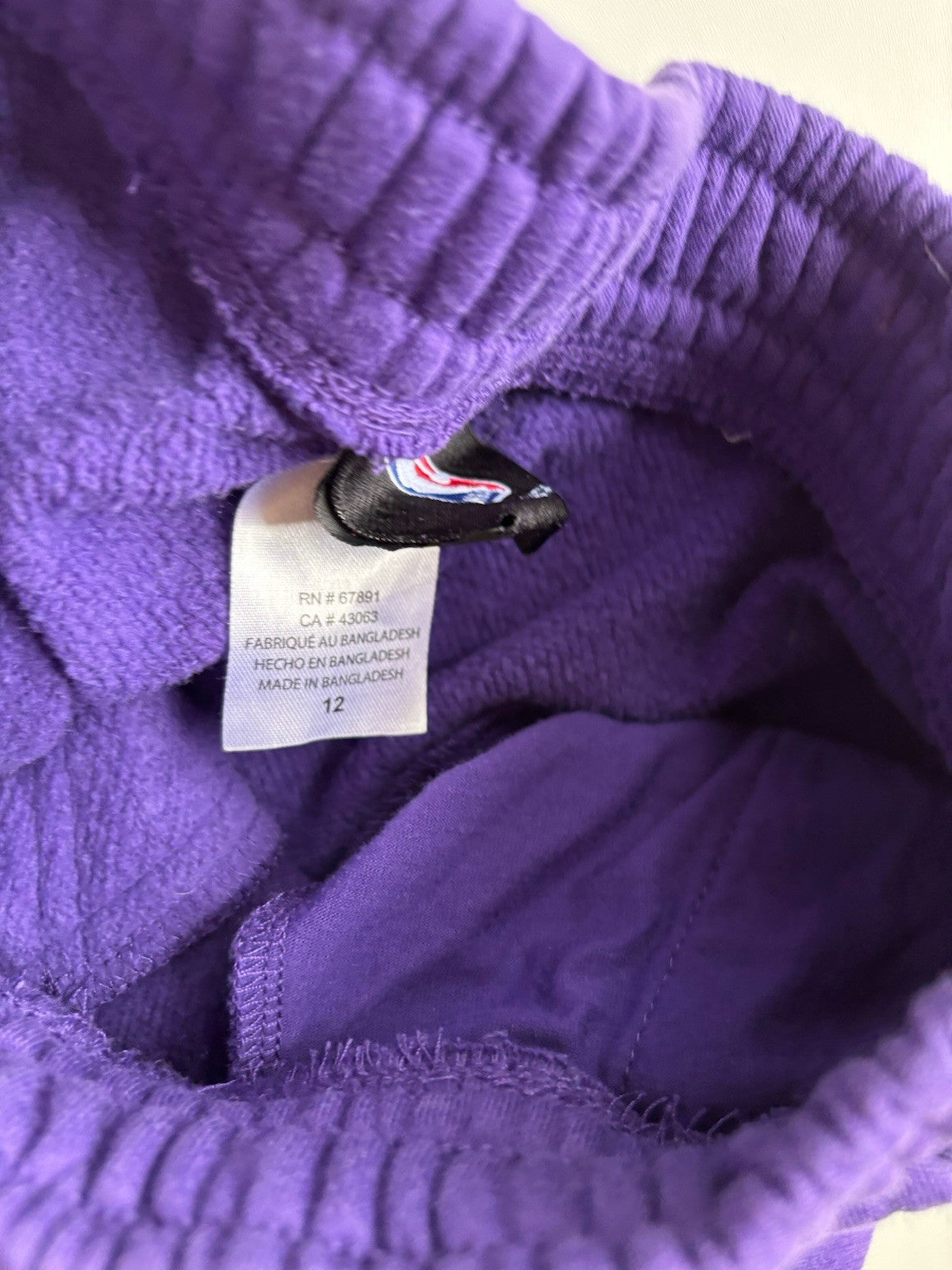 NBA LA Lakers Youth kids size 12 purple drawstring fleece tracksuit pants, VGUC