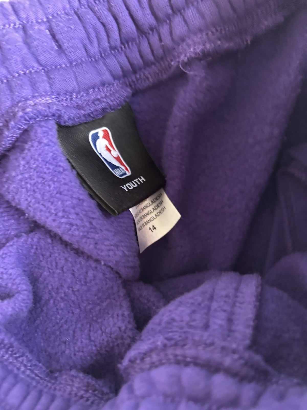 NBA LA Lakers Youth kids size 14 purple drawstring fleece tracksuit pants, VGUC