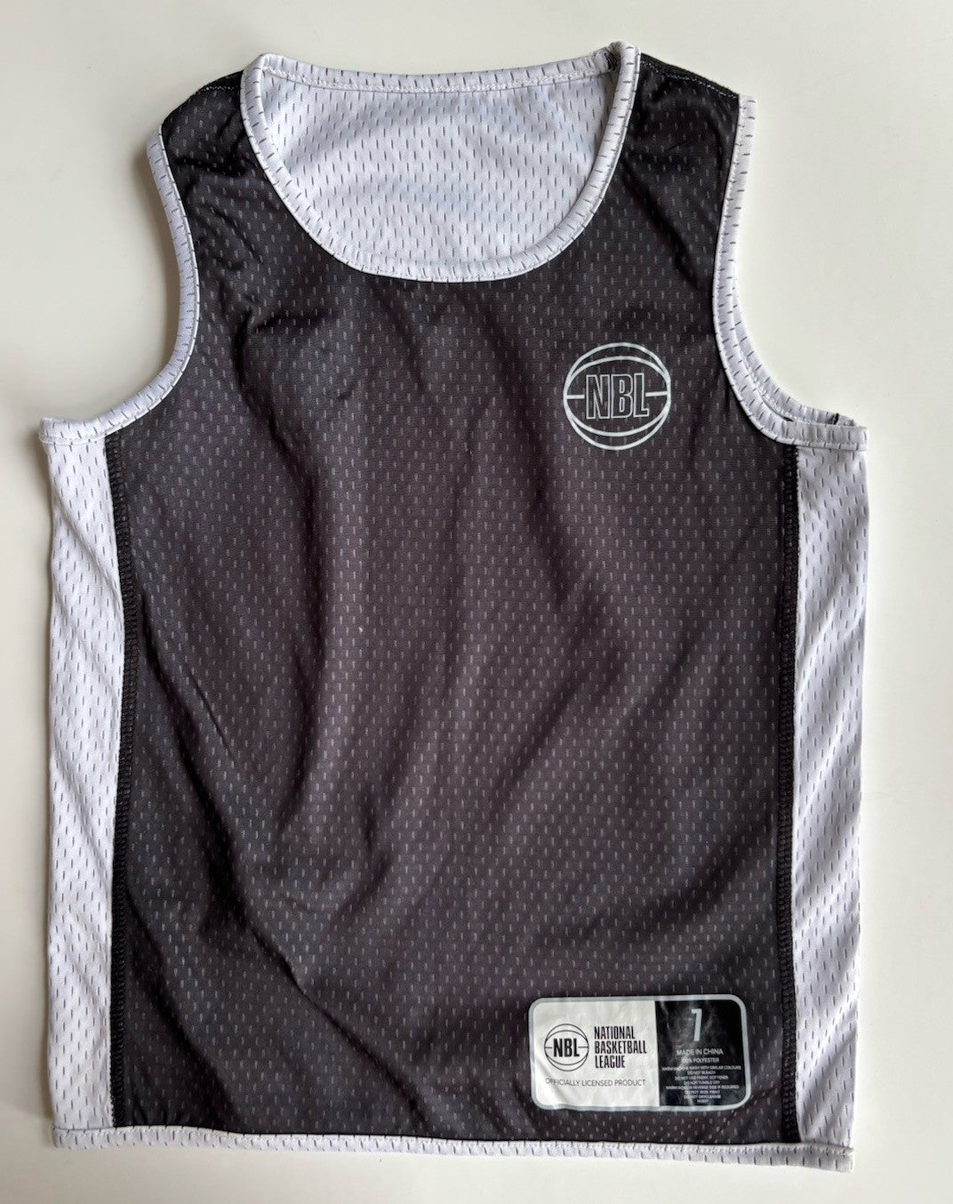 NBL kids boys size 7 black grey basketball singlet tank top, VGUC