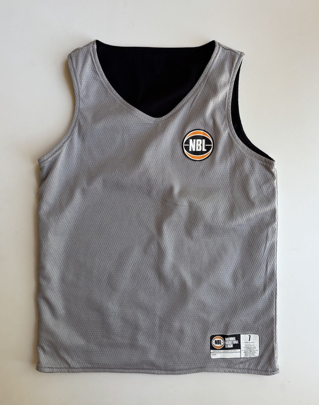 NBL kids boys size 7 grey basketball singlet tank top, VGUC