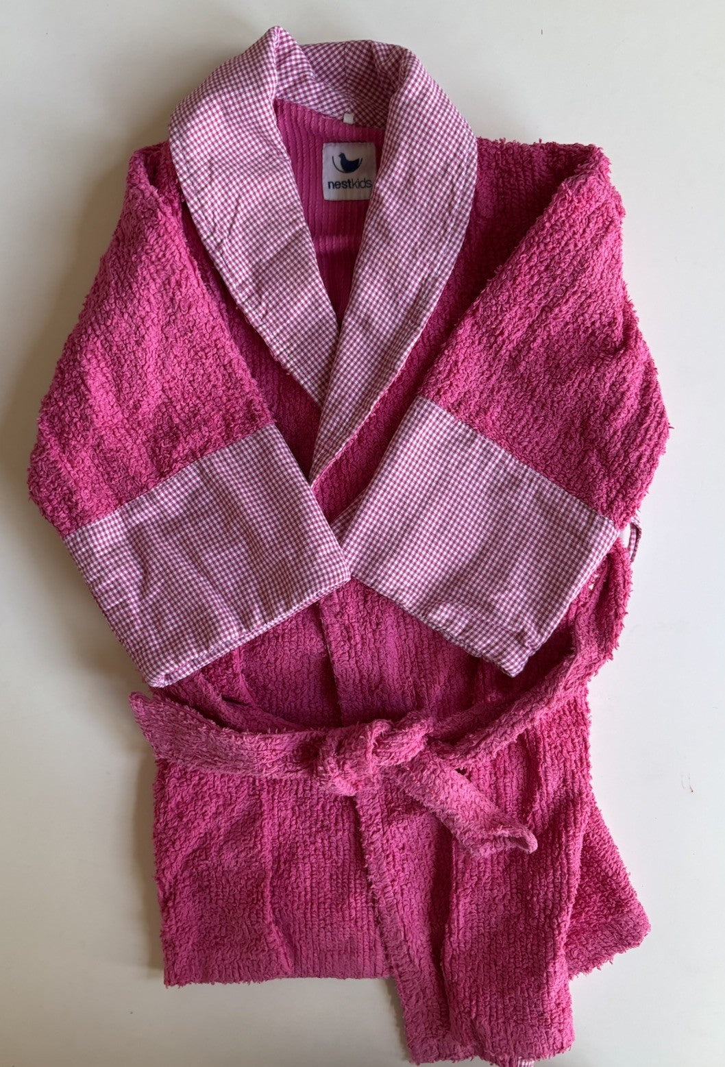 Nest Kids girls toddler size 2 pink ribbed Terry towelling dressing gown, VGUC