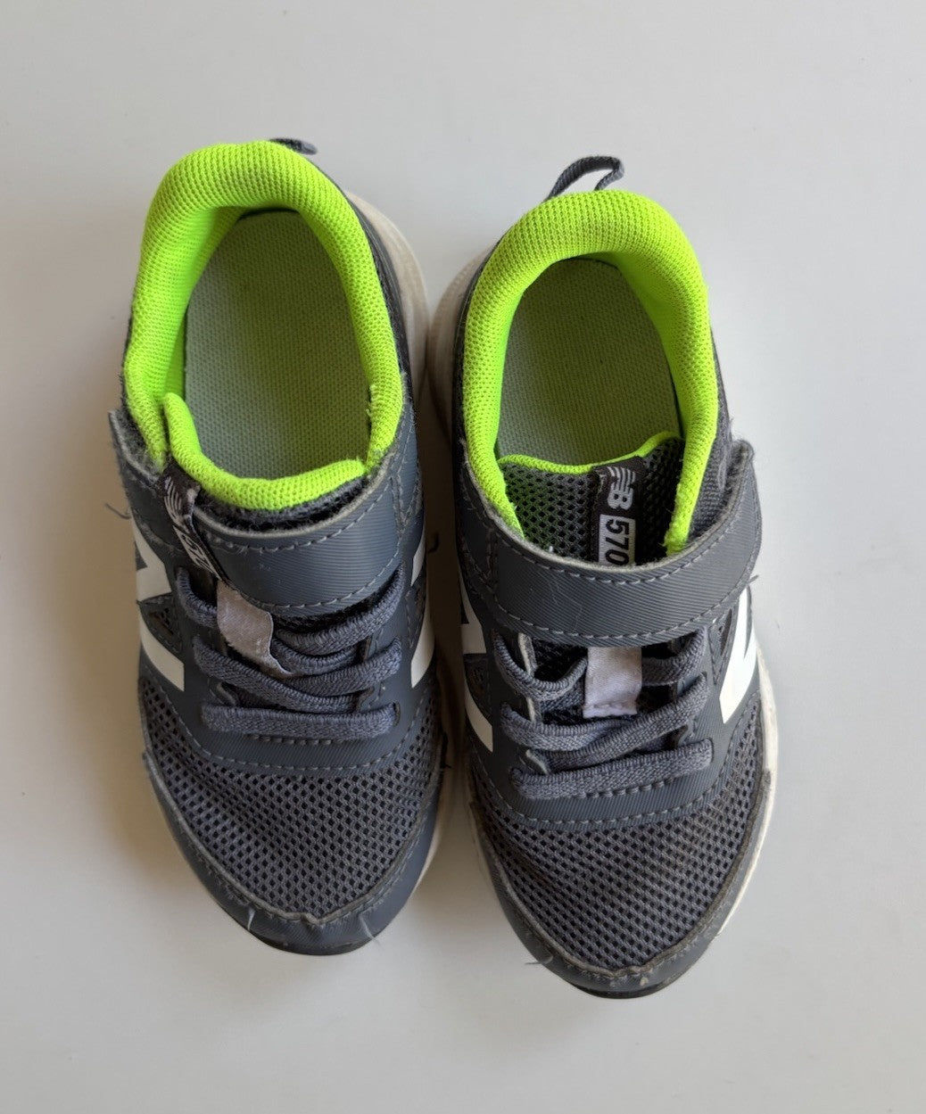 New Balance kids boys toddler size US 9/EUR 25 grey green sneakers, VGUC