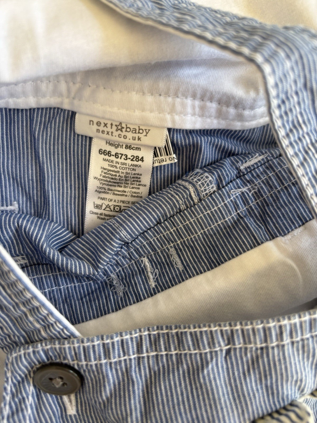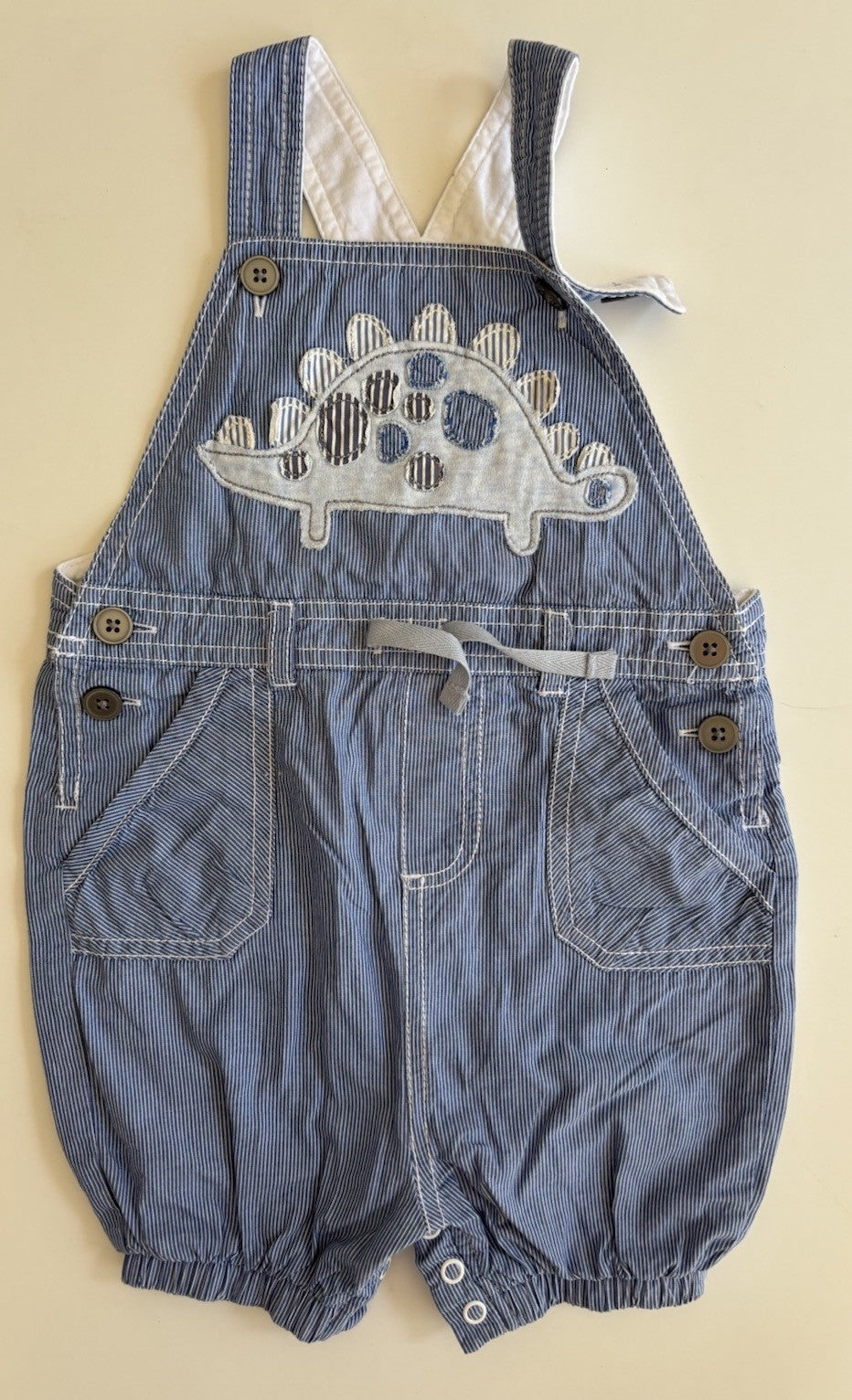 Next baby boy size 12-18 months blue white stripe romper dinosaur, VGUC