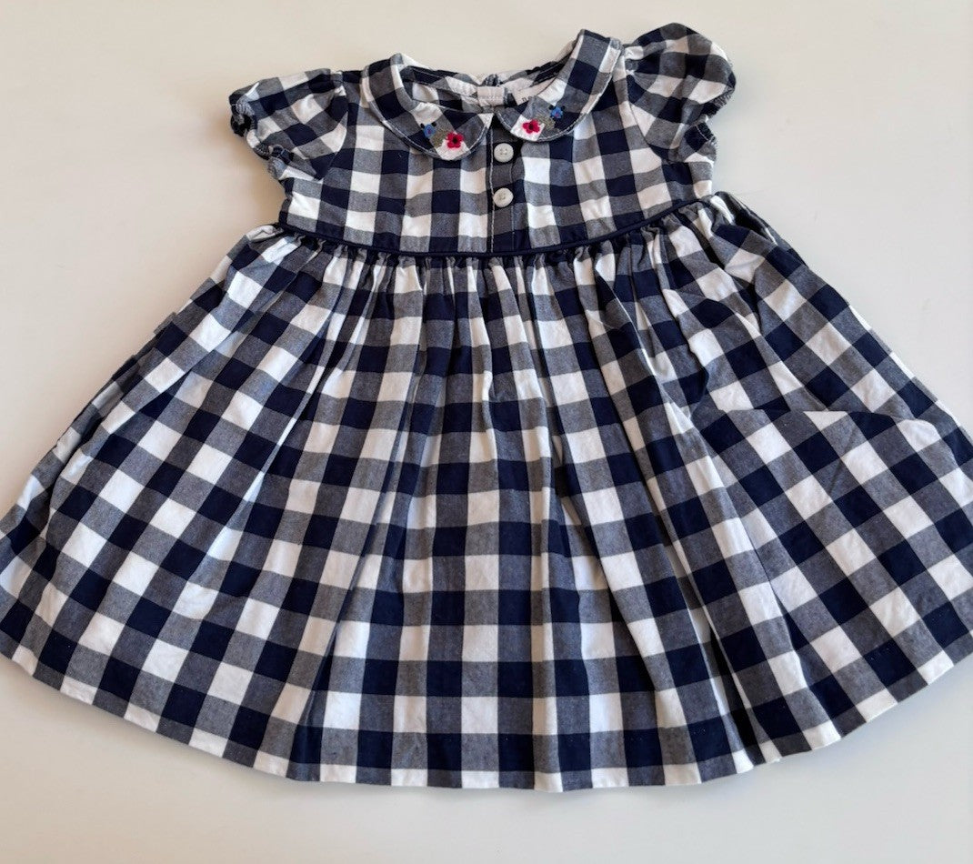 Next baby girl size 0-3 months navy blue gingham collared dress, VGUC
