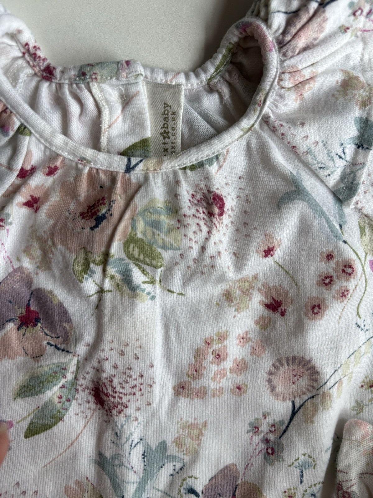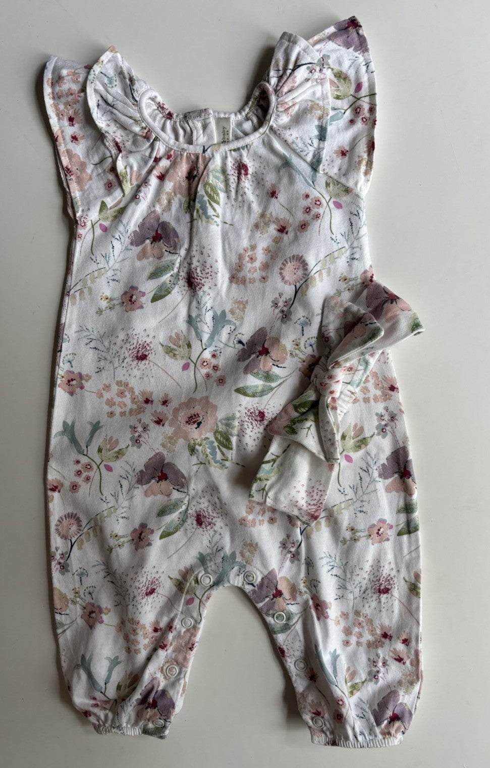 Next baby girl size 3-6 months white pink floral romper + headband, VGUC