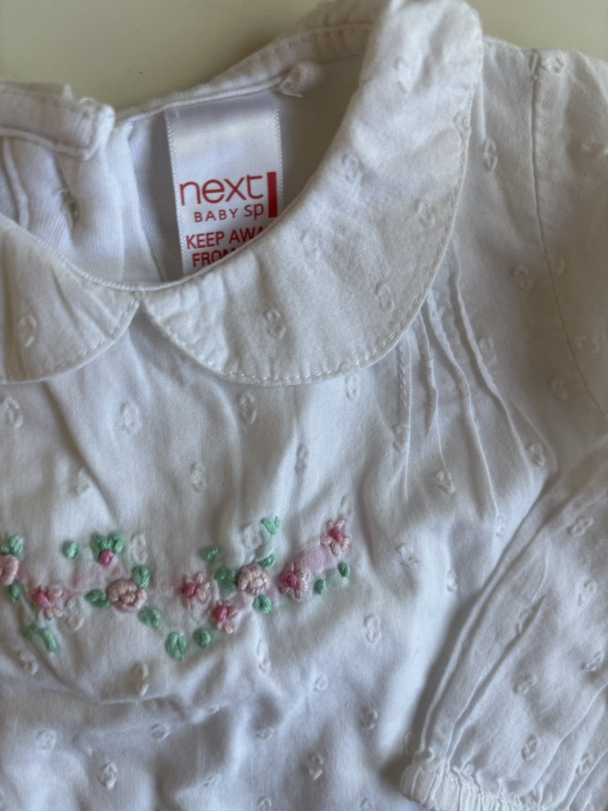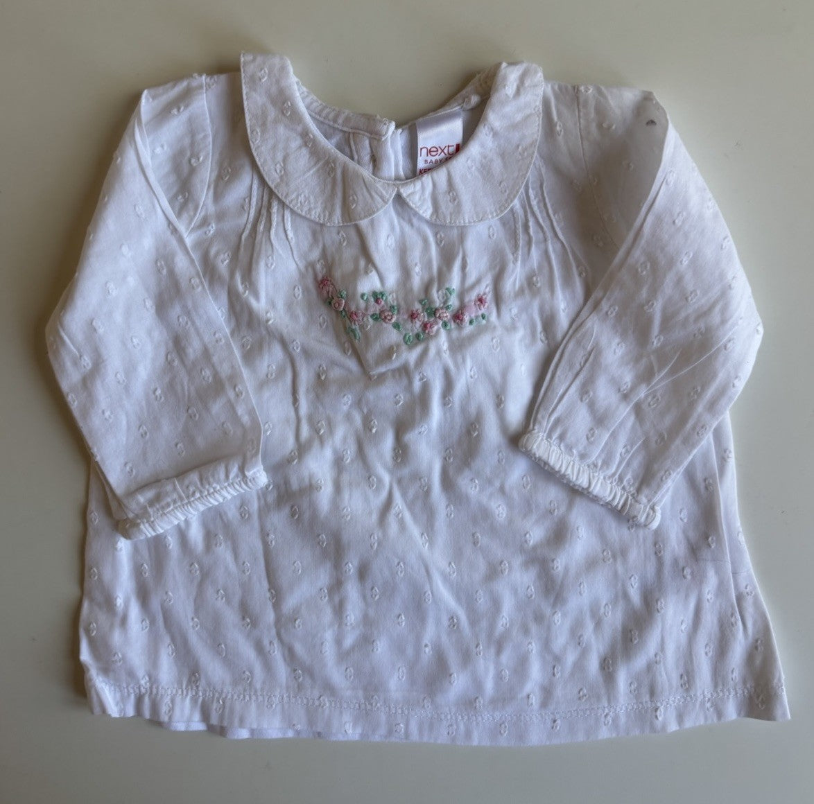 Next baby girl size 3-6 months white floral embroidered collared top, VGUC