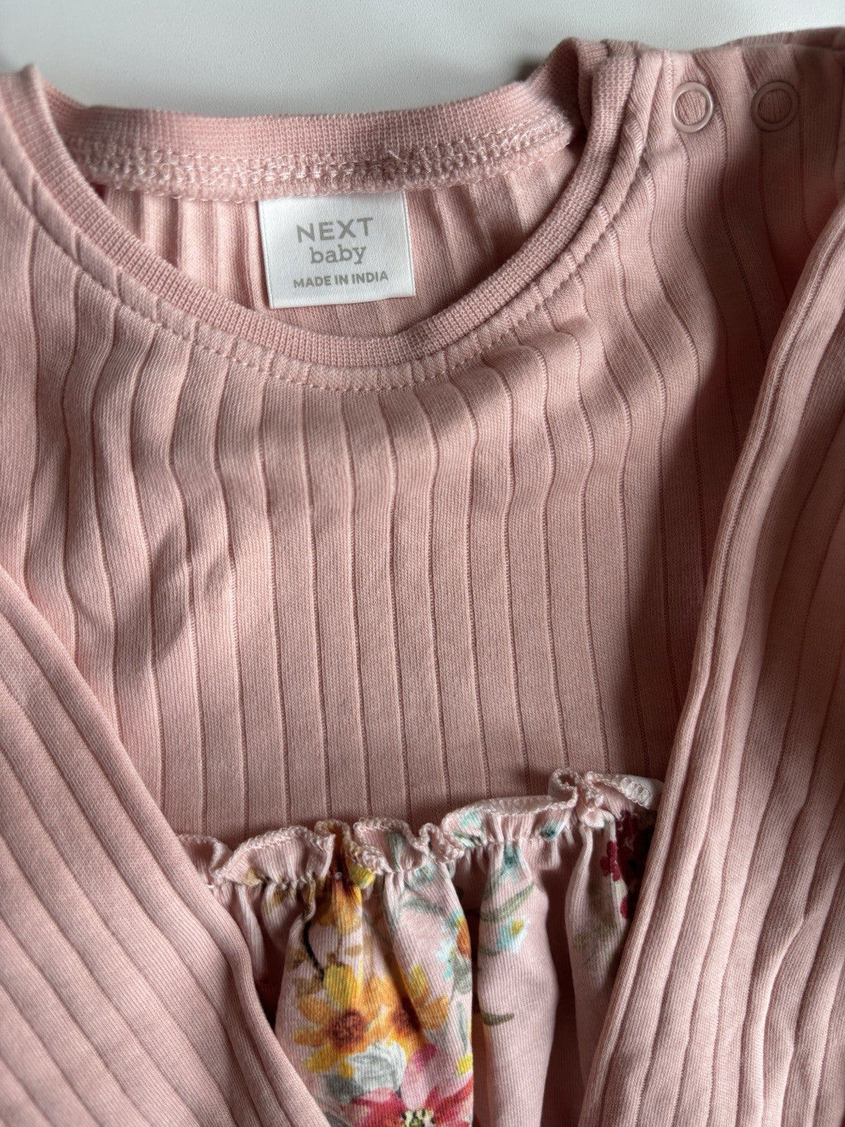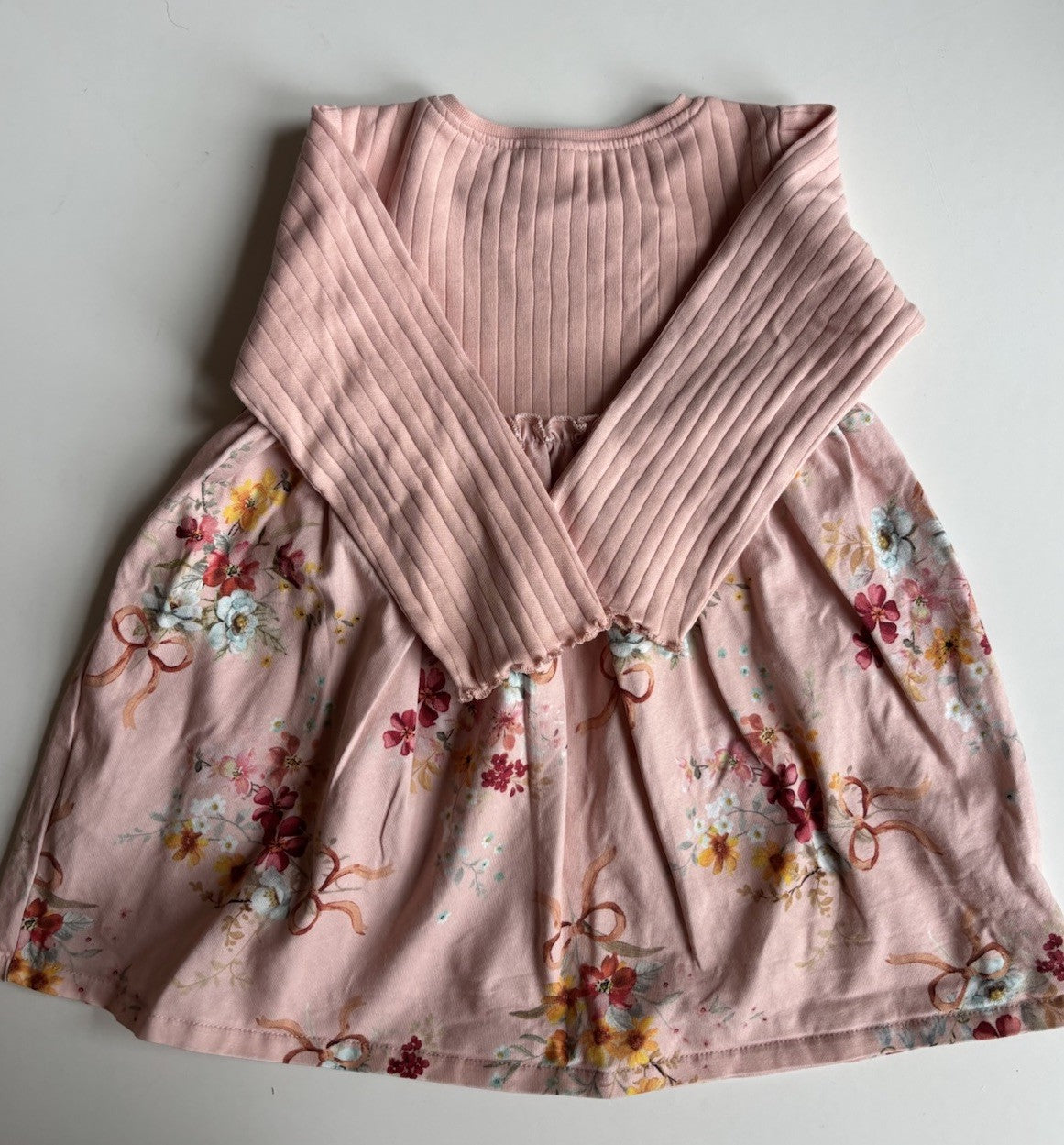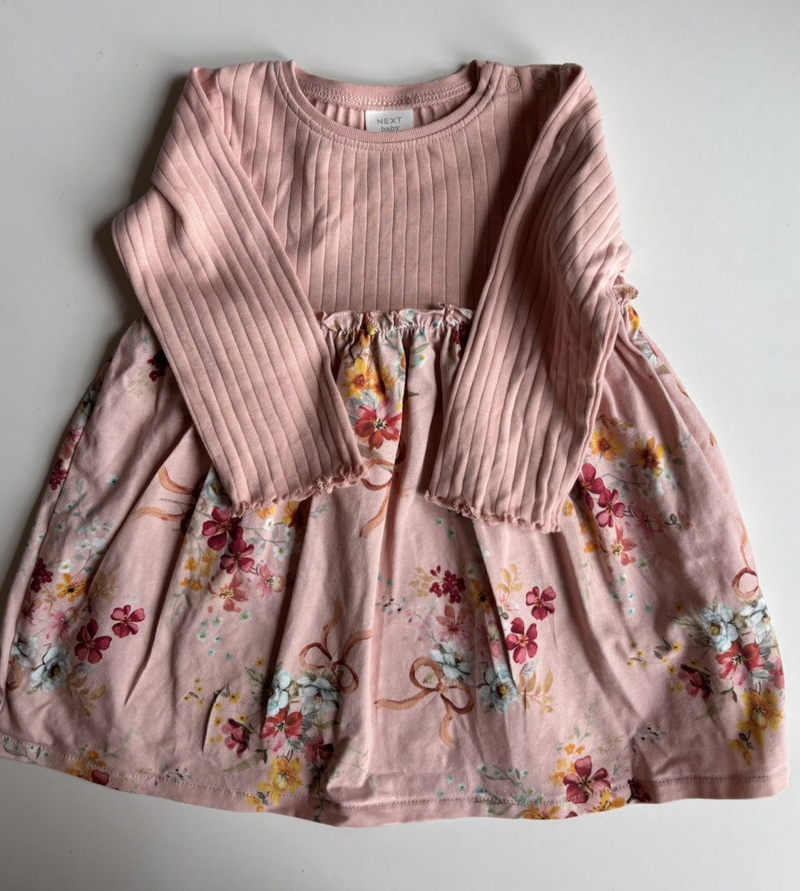 Next baby girl size 9-12 months pink ribbed floral dress, VGUC