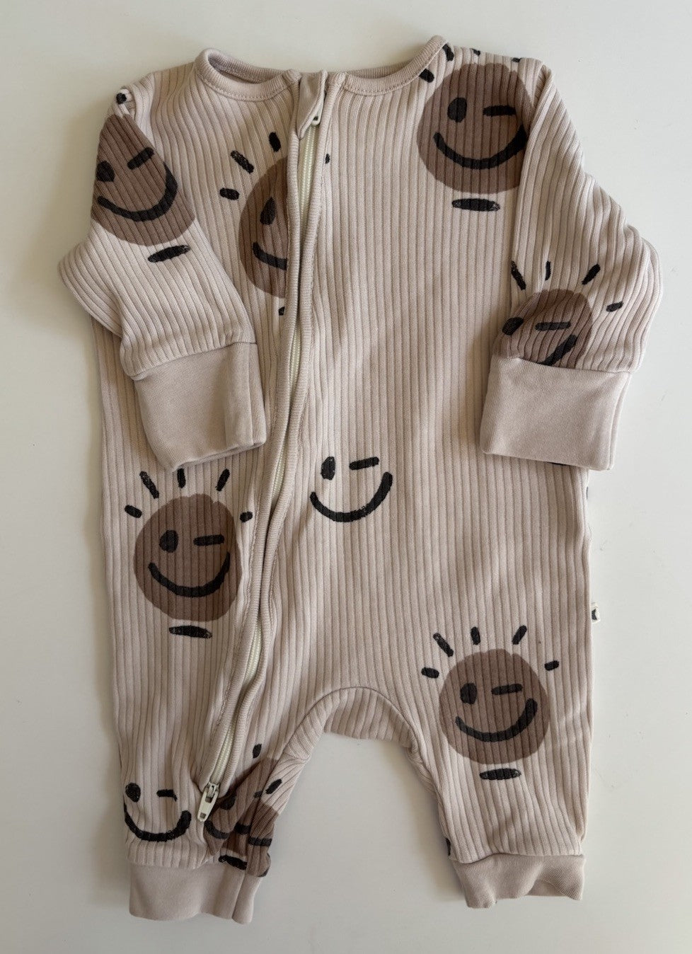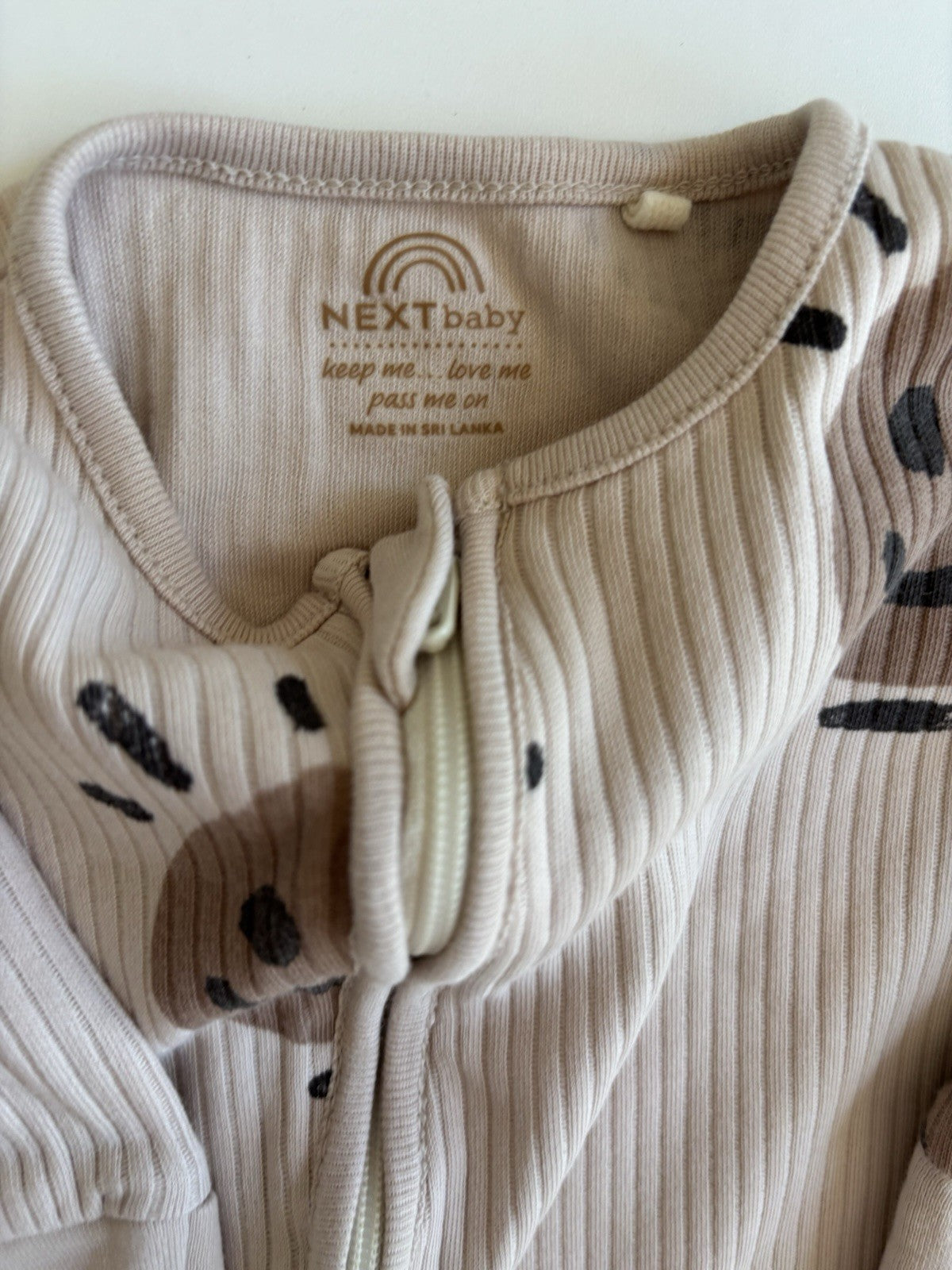 Next baby size 0-3 months brown faces ribbed one-piece, VGUC