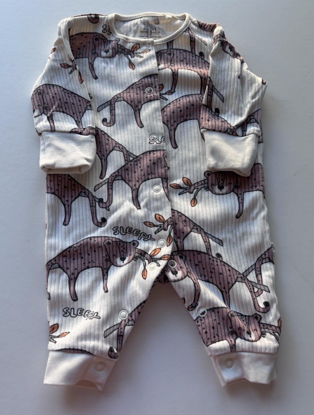 Next baby size 0-3 white ribbed leopard one-piece, VGUC