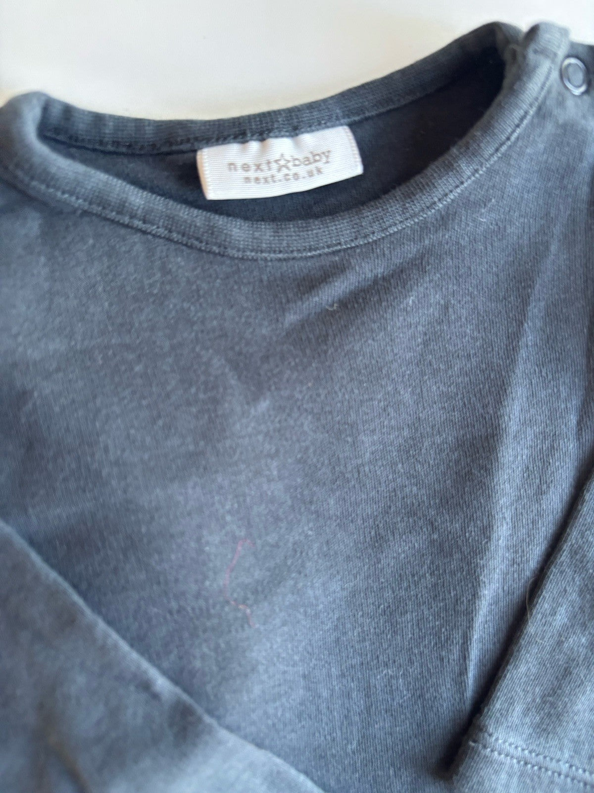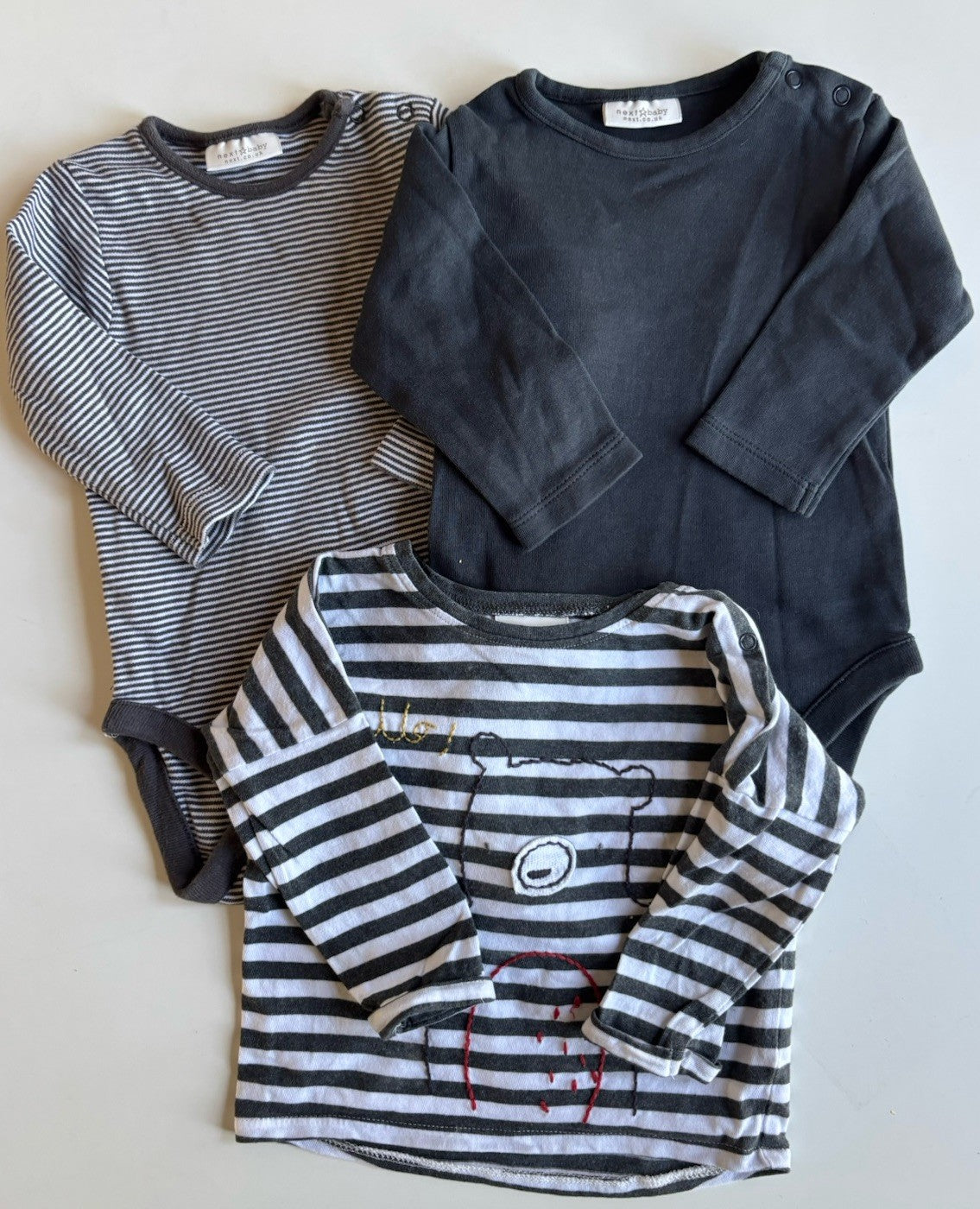 Next baby size 3-6 months x3 grey bodysuit tops stripes bear bundle, VGUC