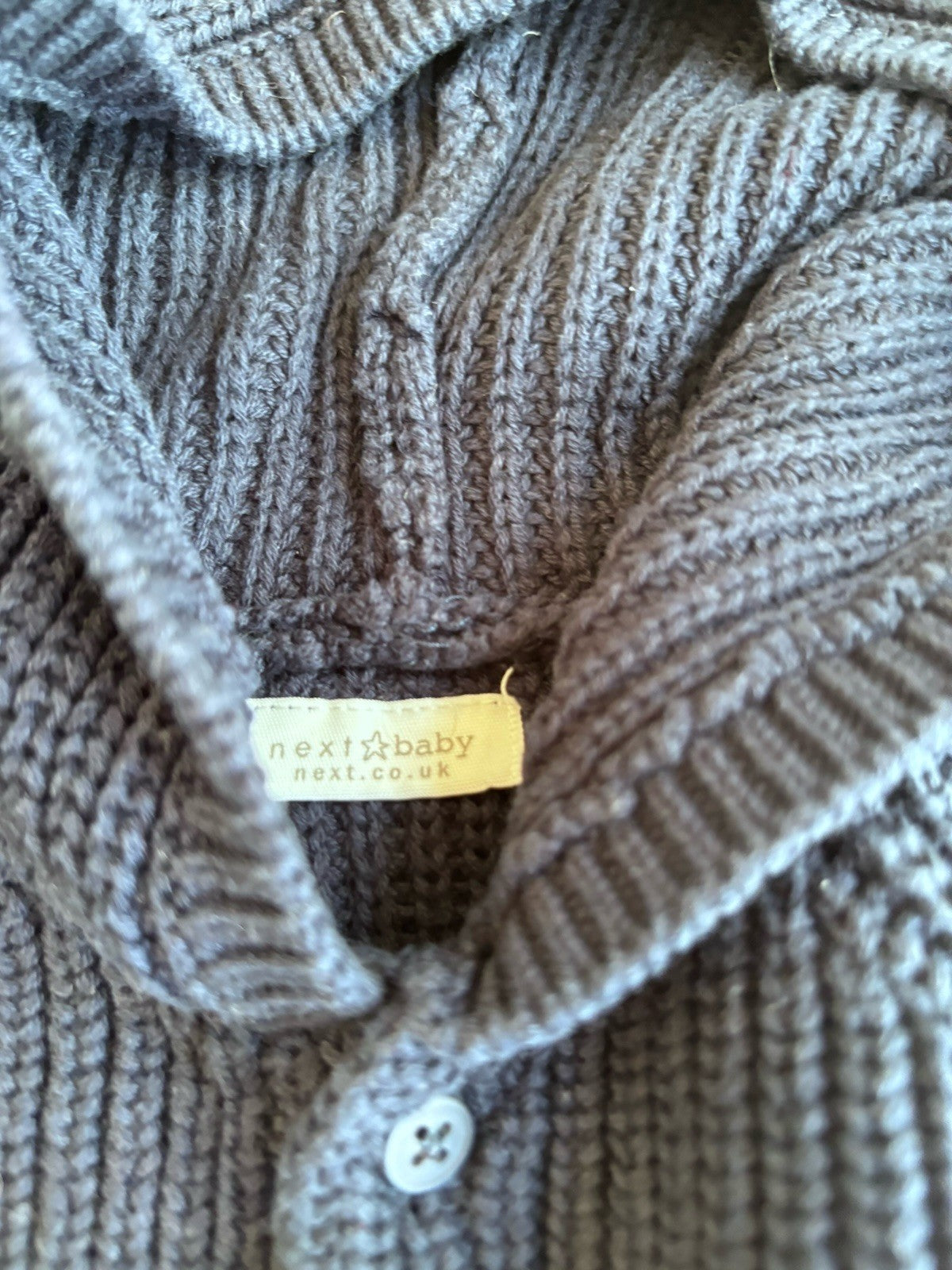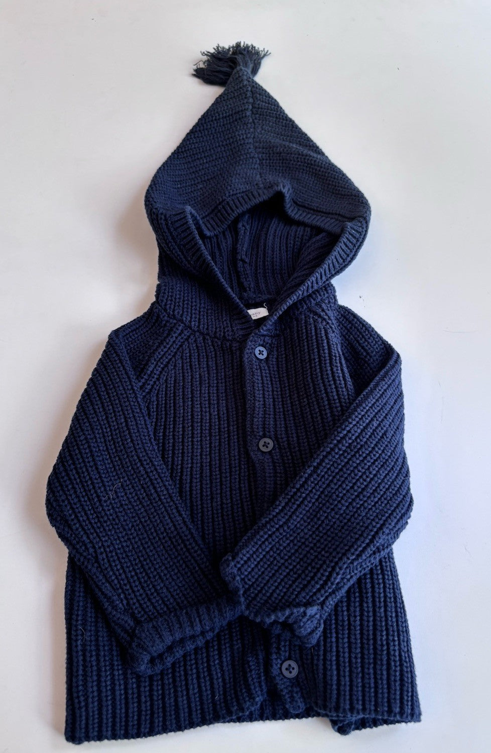 Next baby size 3-6 months navy blue ribbed knit hooded cardigan jumper