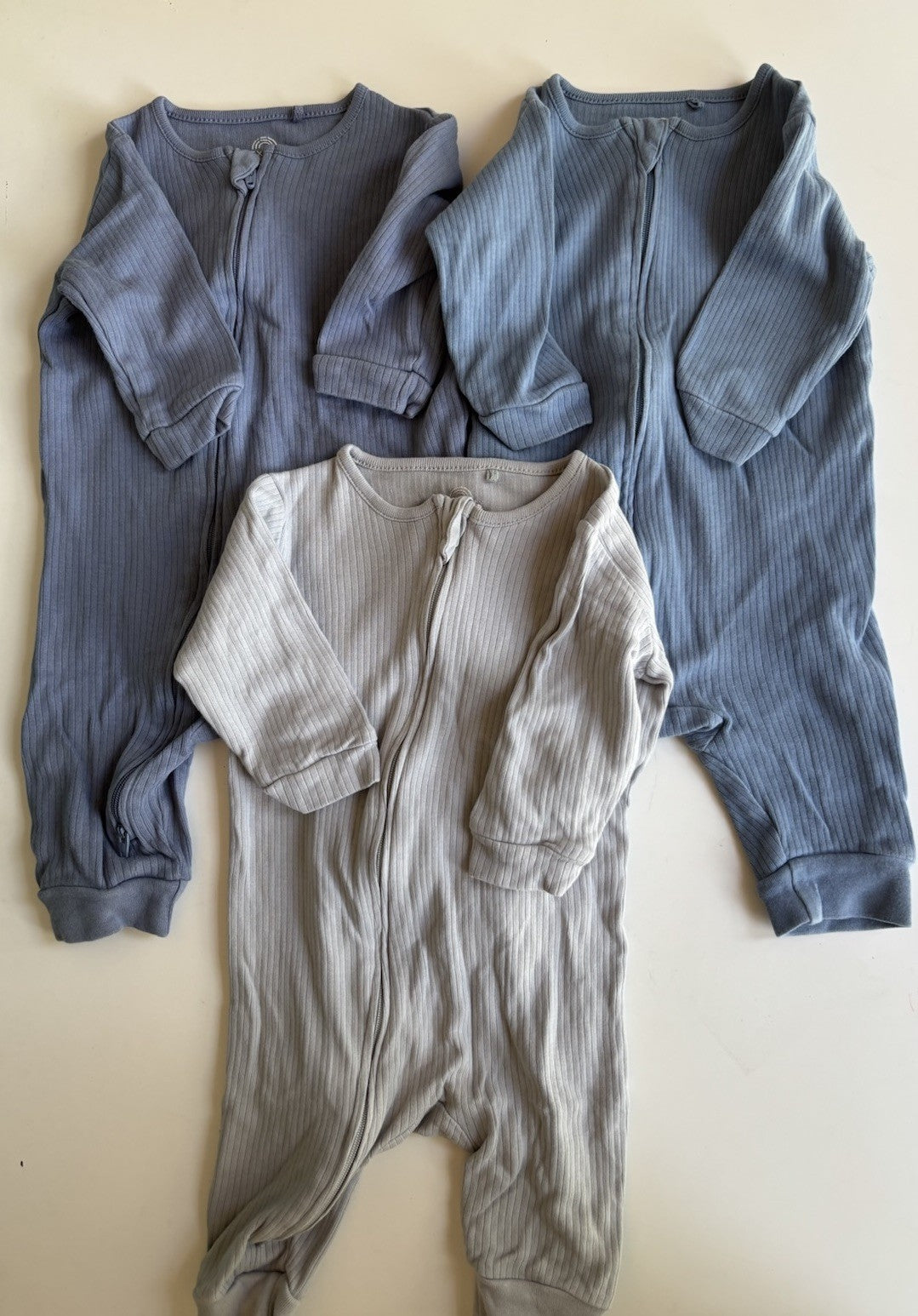 Next baby size 6-9 months x3 blue ribbed one-piece zip, VGUC