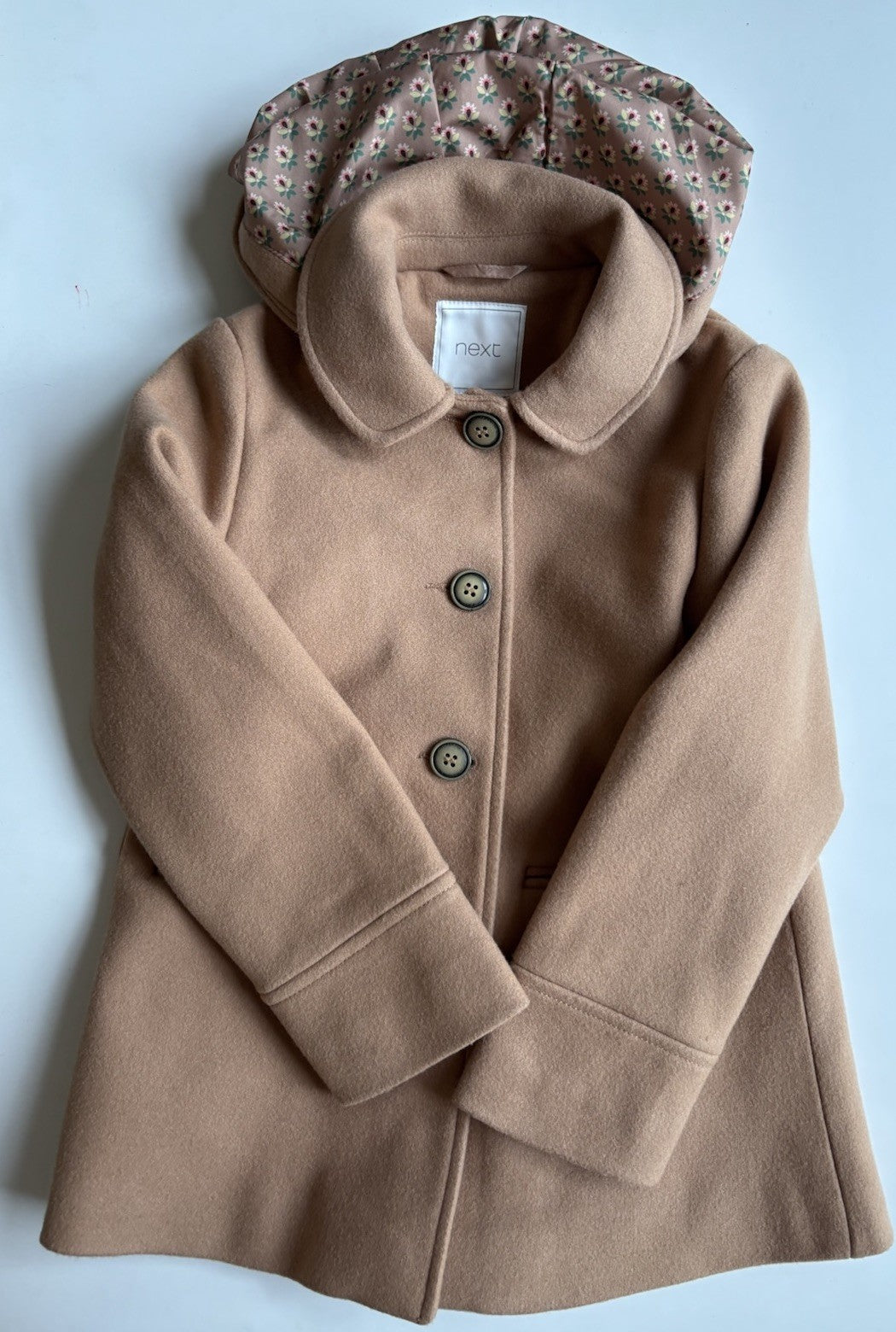 Next kids girls size 6-7 years brown hooded coat jacket, VGUC