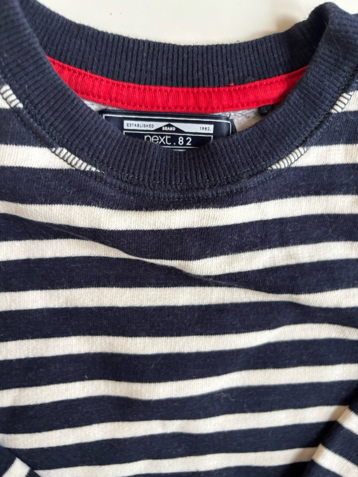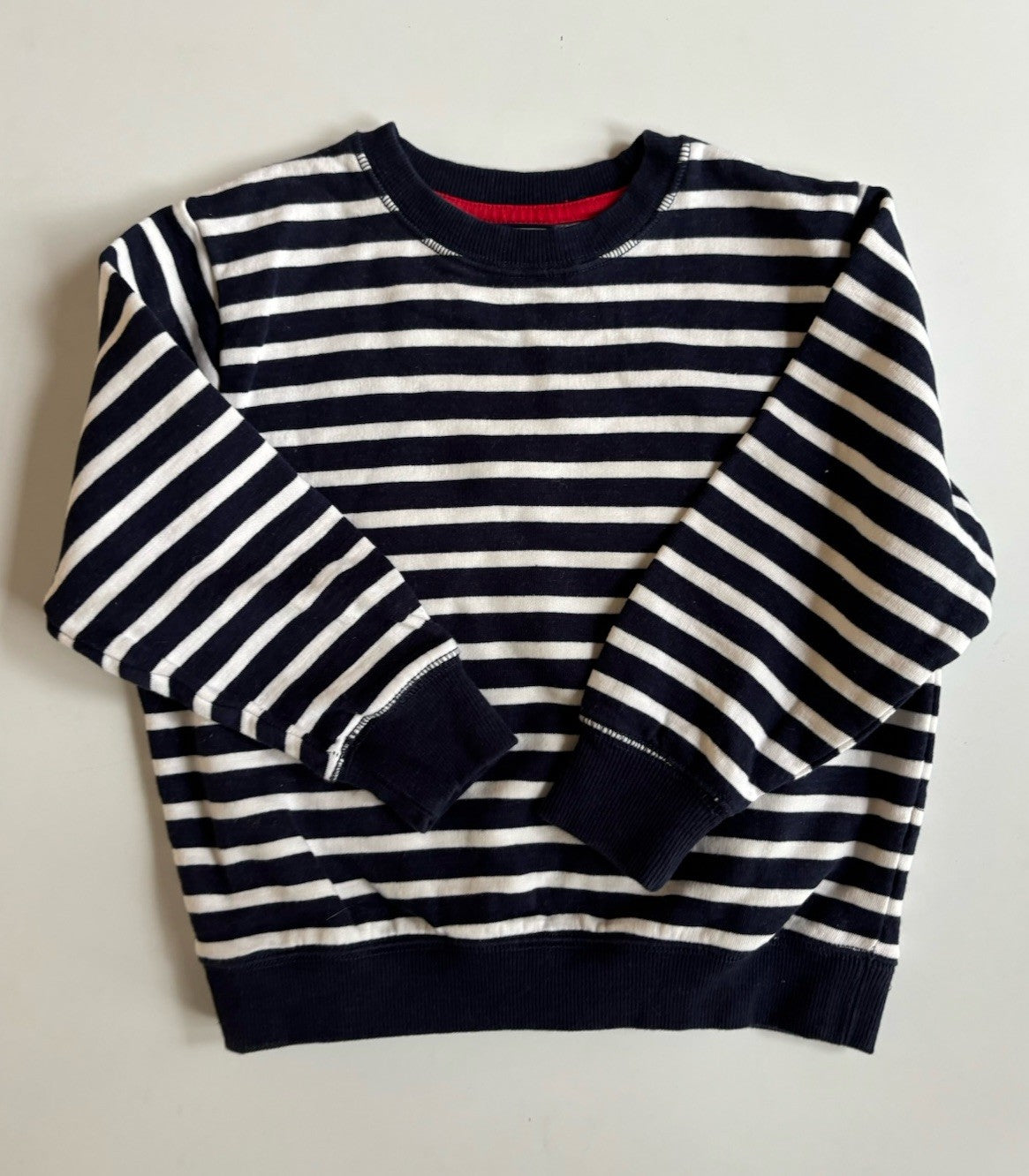 Next kids size 5-6 years navy blue white stripe pullover jumper, VGUC