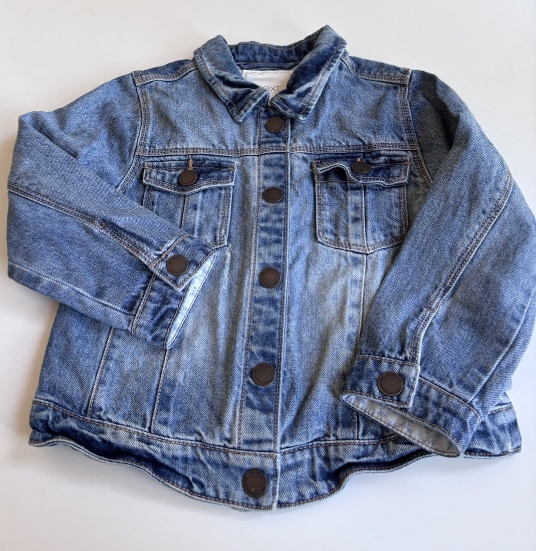 Next kids toddler size 3-4 years blue distressed denim jacket, VGUC