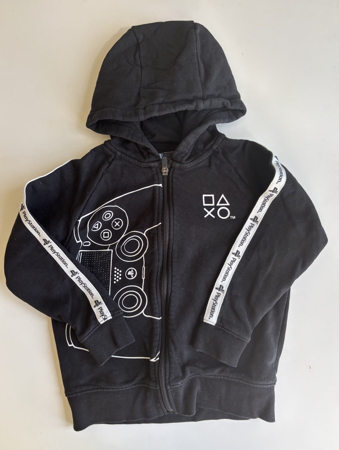 Next x Playstation kids boys size 7 years black hooded zip up jumper, VGUC
