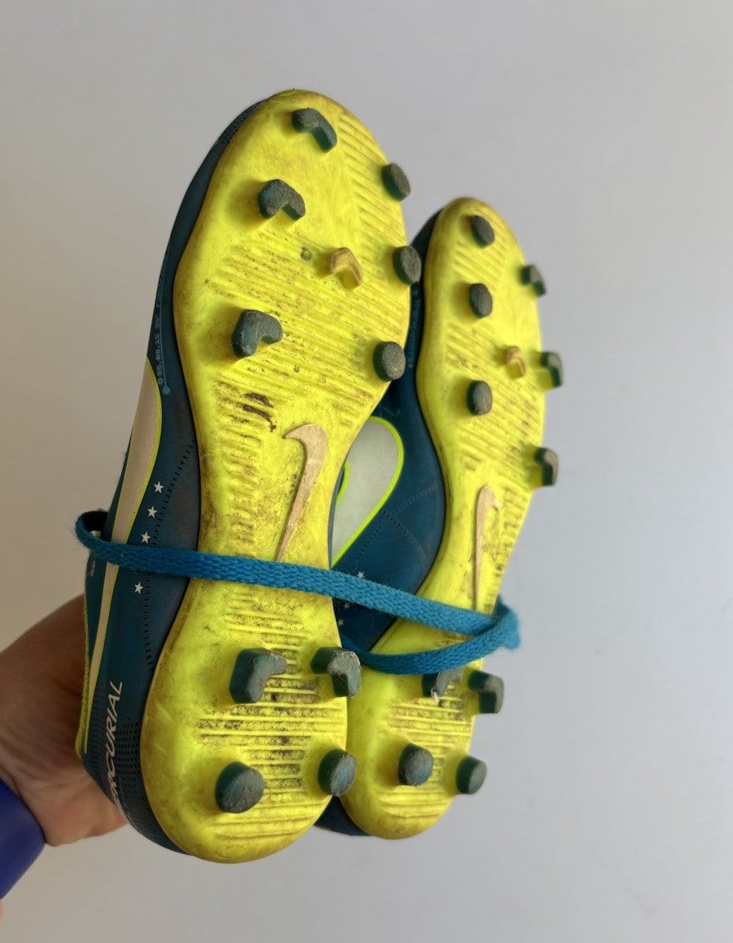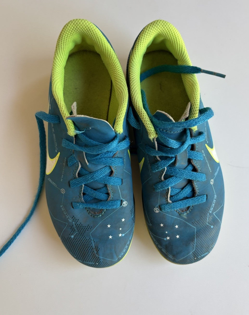 Nike kids boys size US 12/EUR 29.5 blue green lace up footy boots shoe