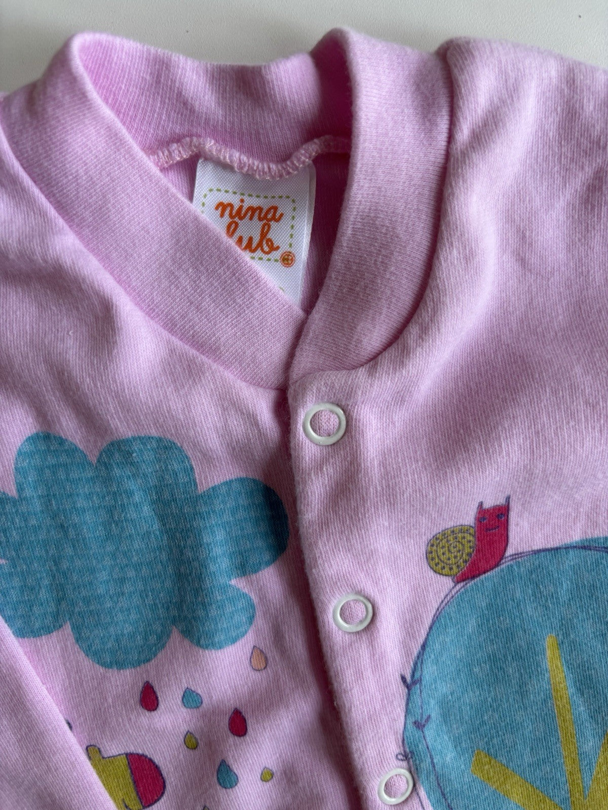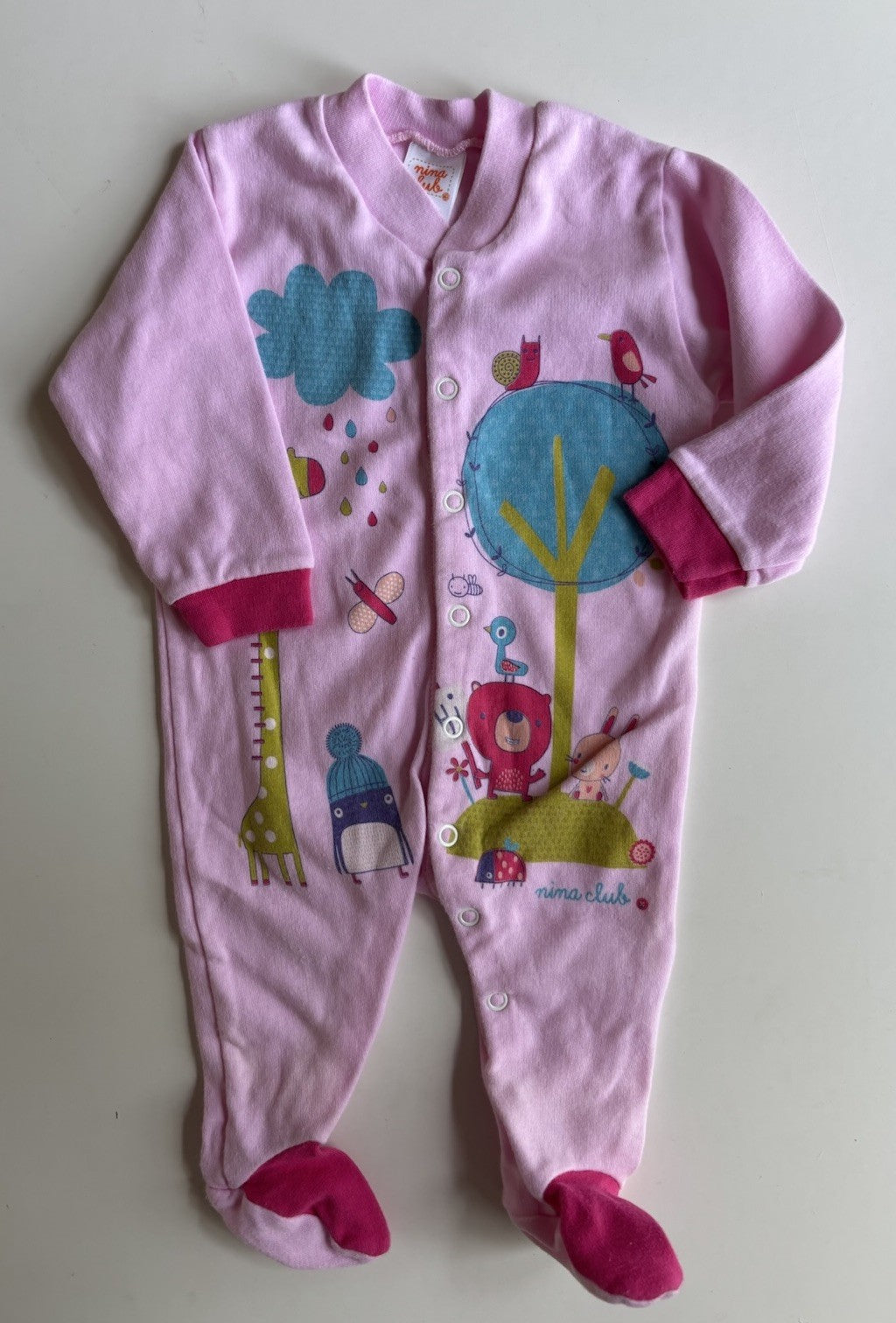 Nina Club baby girl size 3-6 months pink animals tree one-piece, VGUC