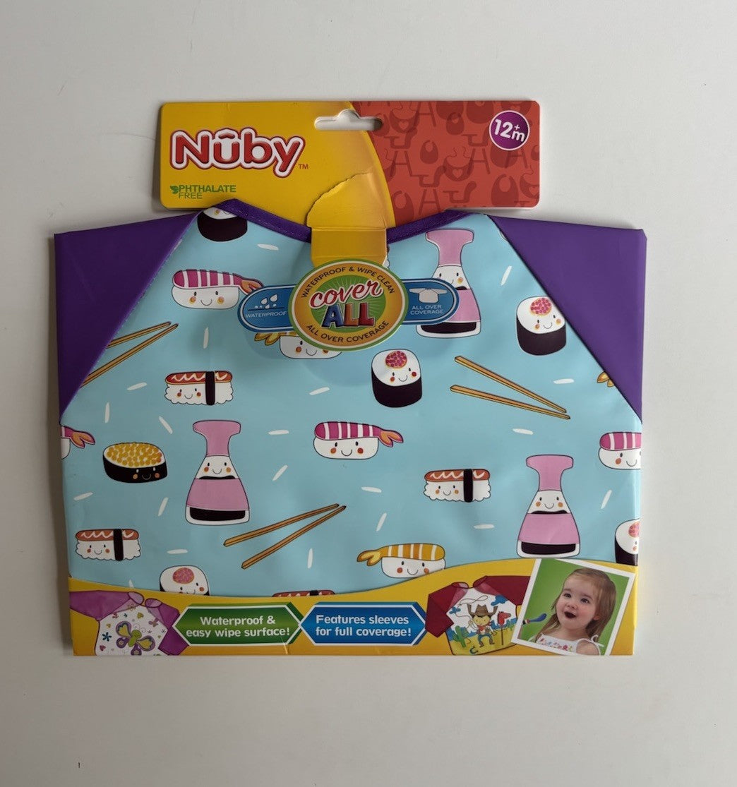 Nuby baby 12m+ blue sushi cover all waterproof bib sleeves, BNWT