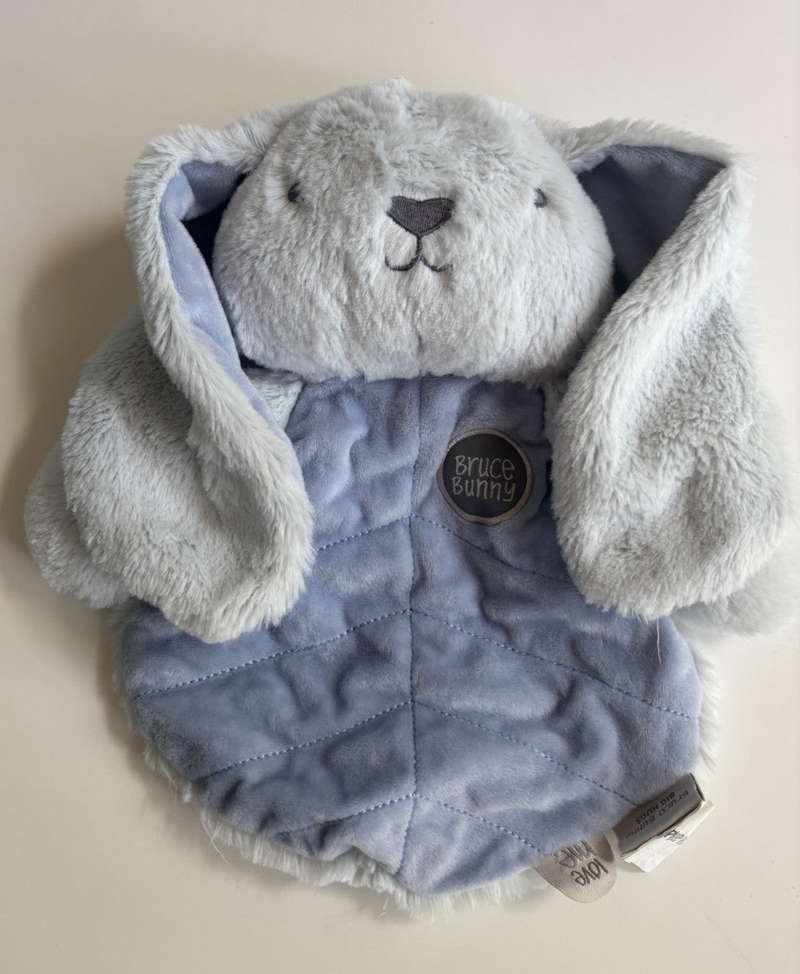 O.B. Designs Bruce Bunny blue fluffy comforter bunny, VGUC
