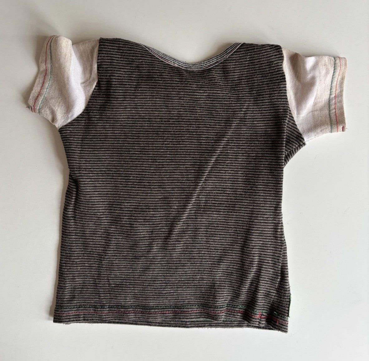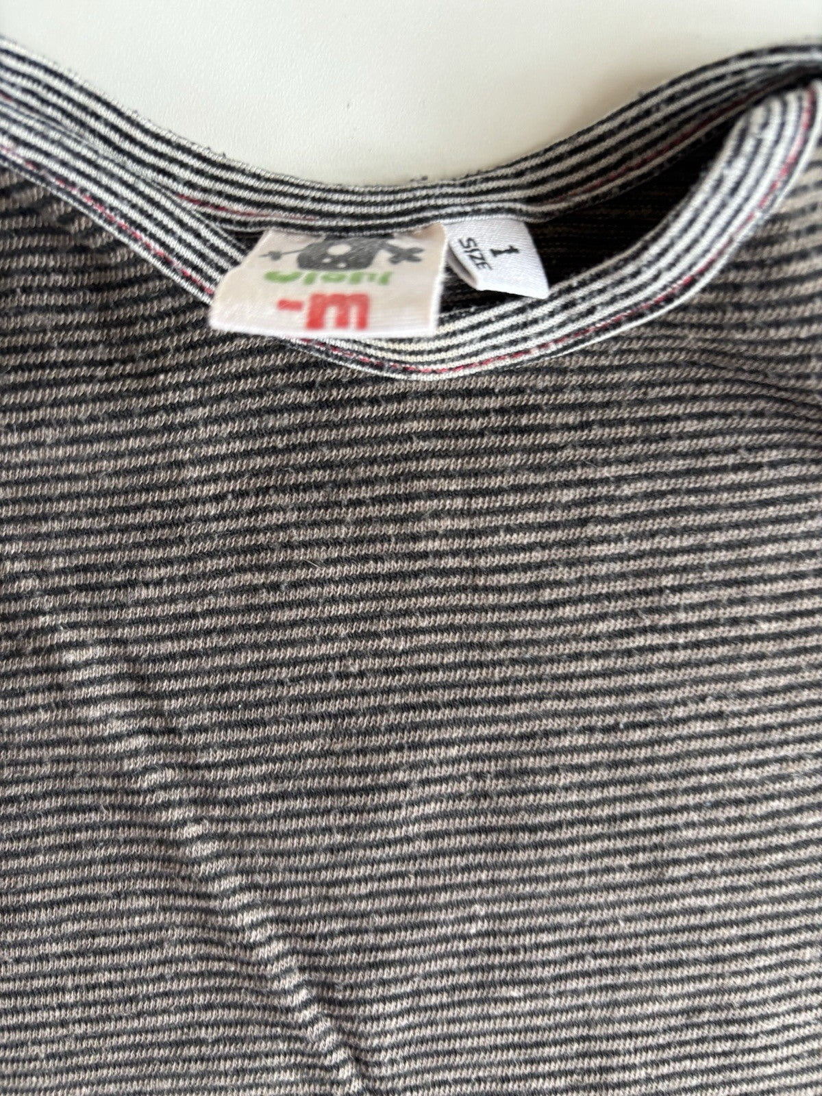 Oishi-M baby size 12-18 months brown black stripe t-shirt top, VGUC
