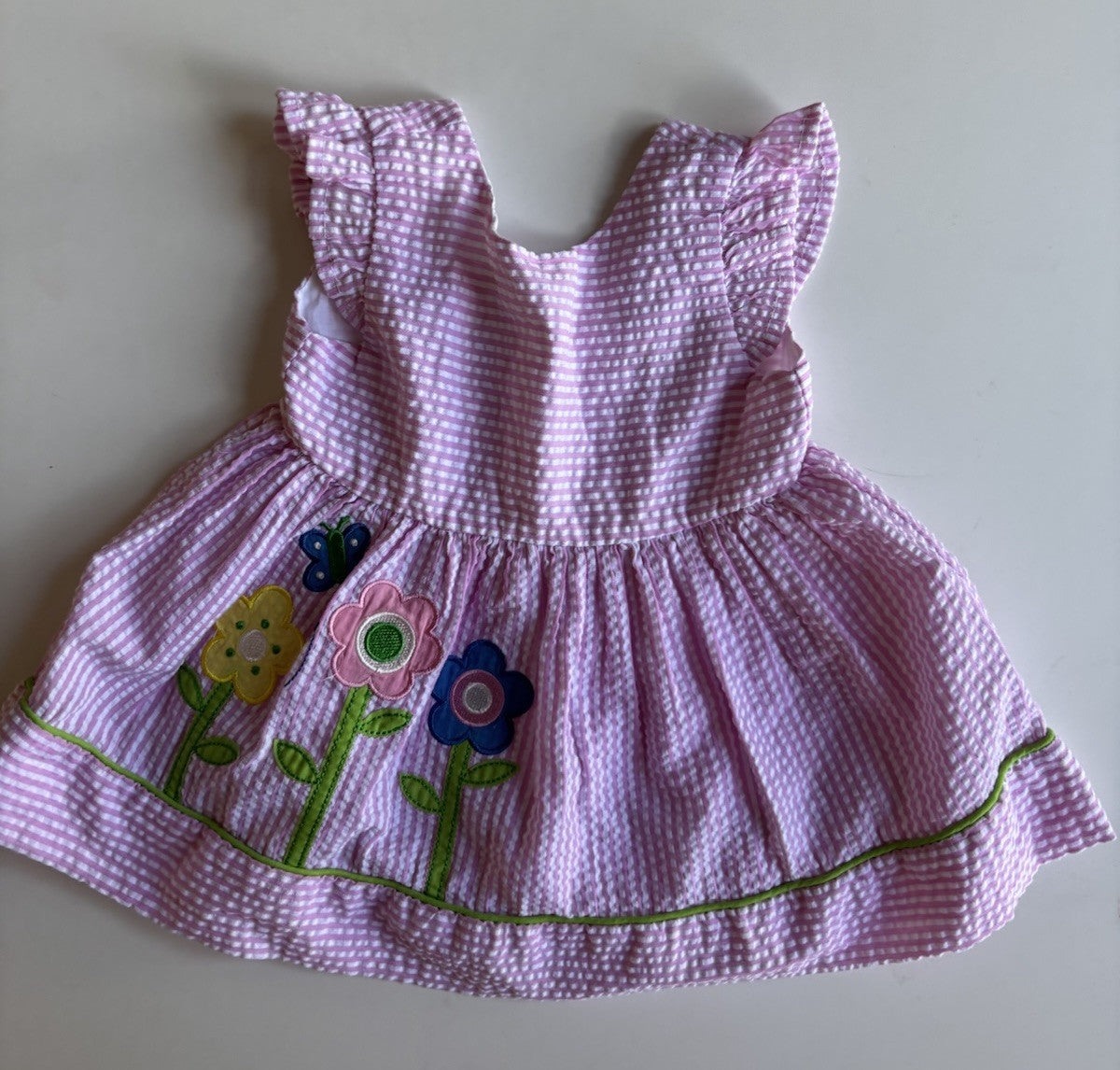 Ollie's Place baby girl size 3-6 months pink white stripe flower dress, VGUC
