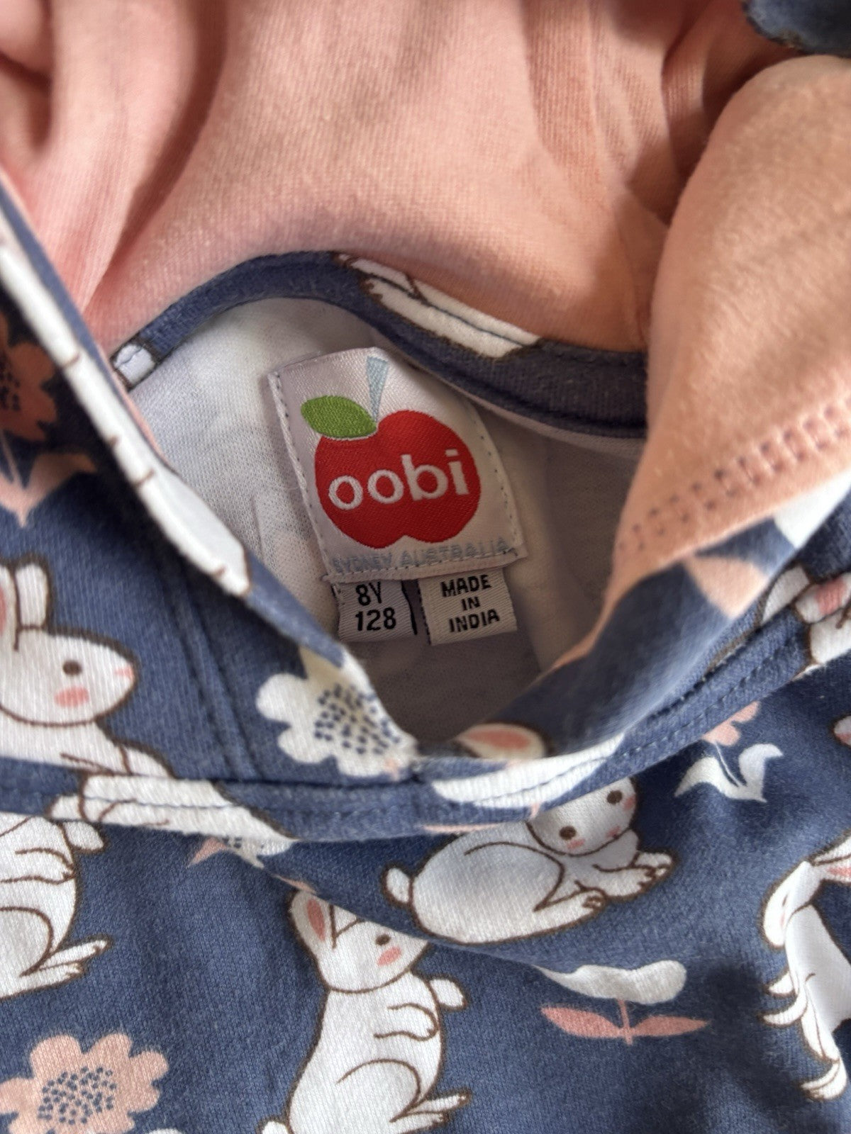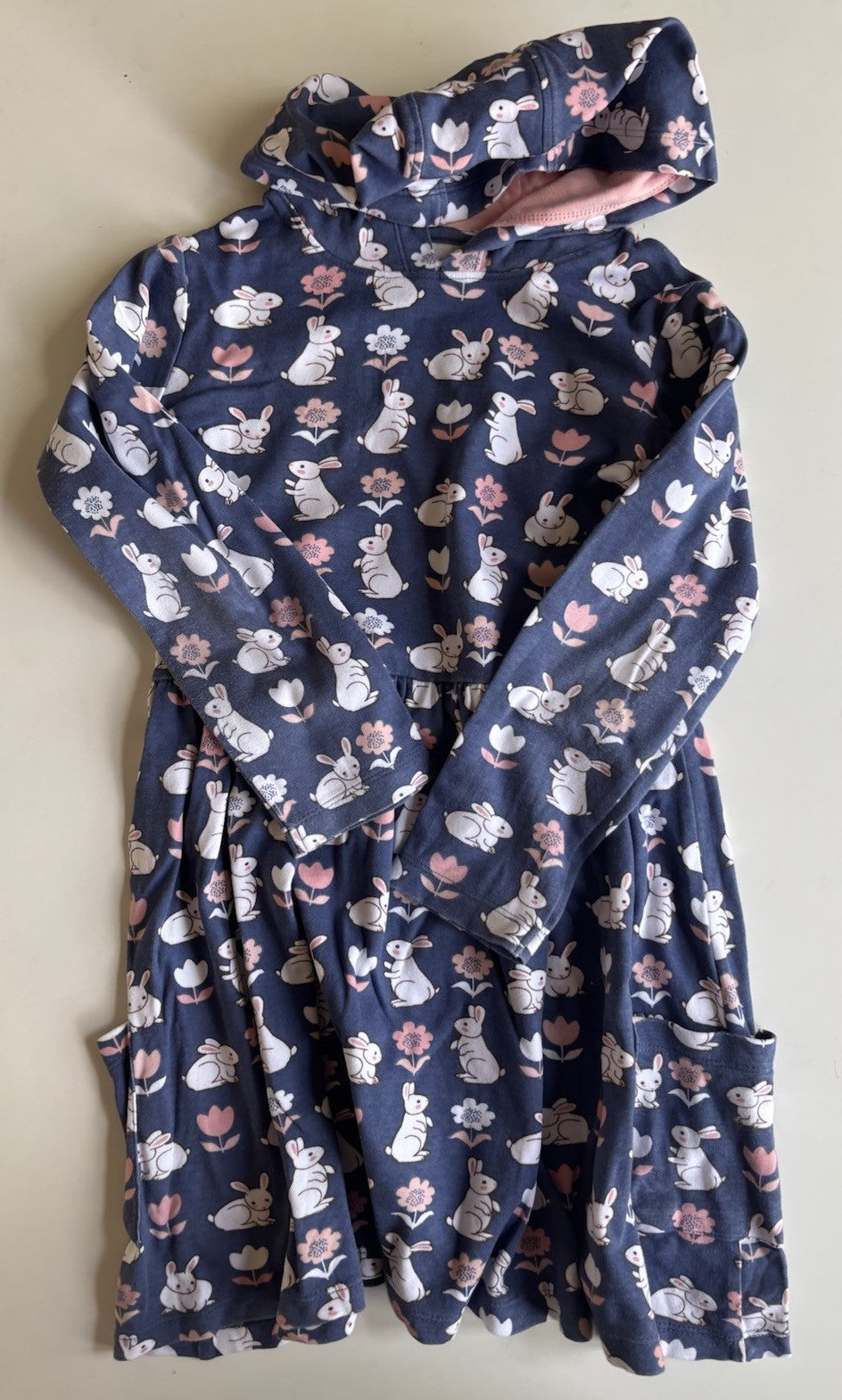 Oobi kids girls size 8 years blue bunnies hooded long sleeve dress, VGUC