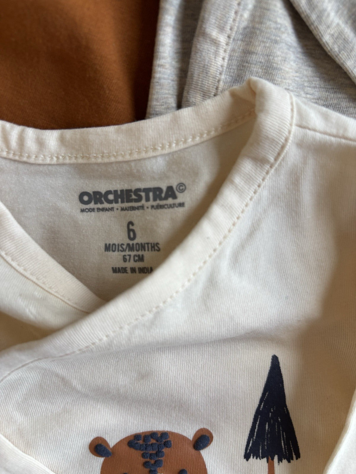 Orchestra baby size 3-6 months x3 brown bears bodysuit tops, VGUC