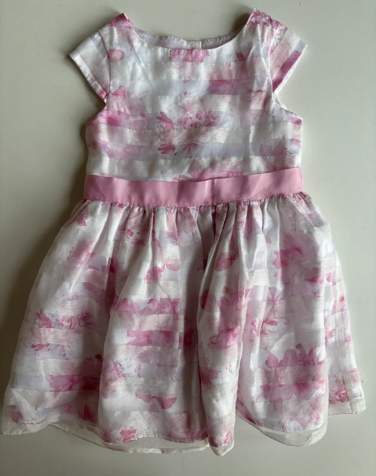 Origami kids girls toddler size 3 pink floral stripe belted party dress, VGUC