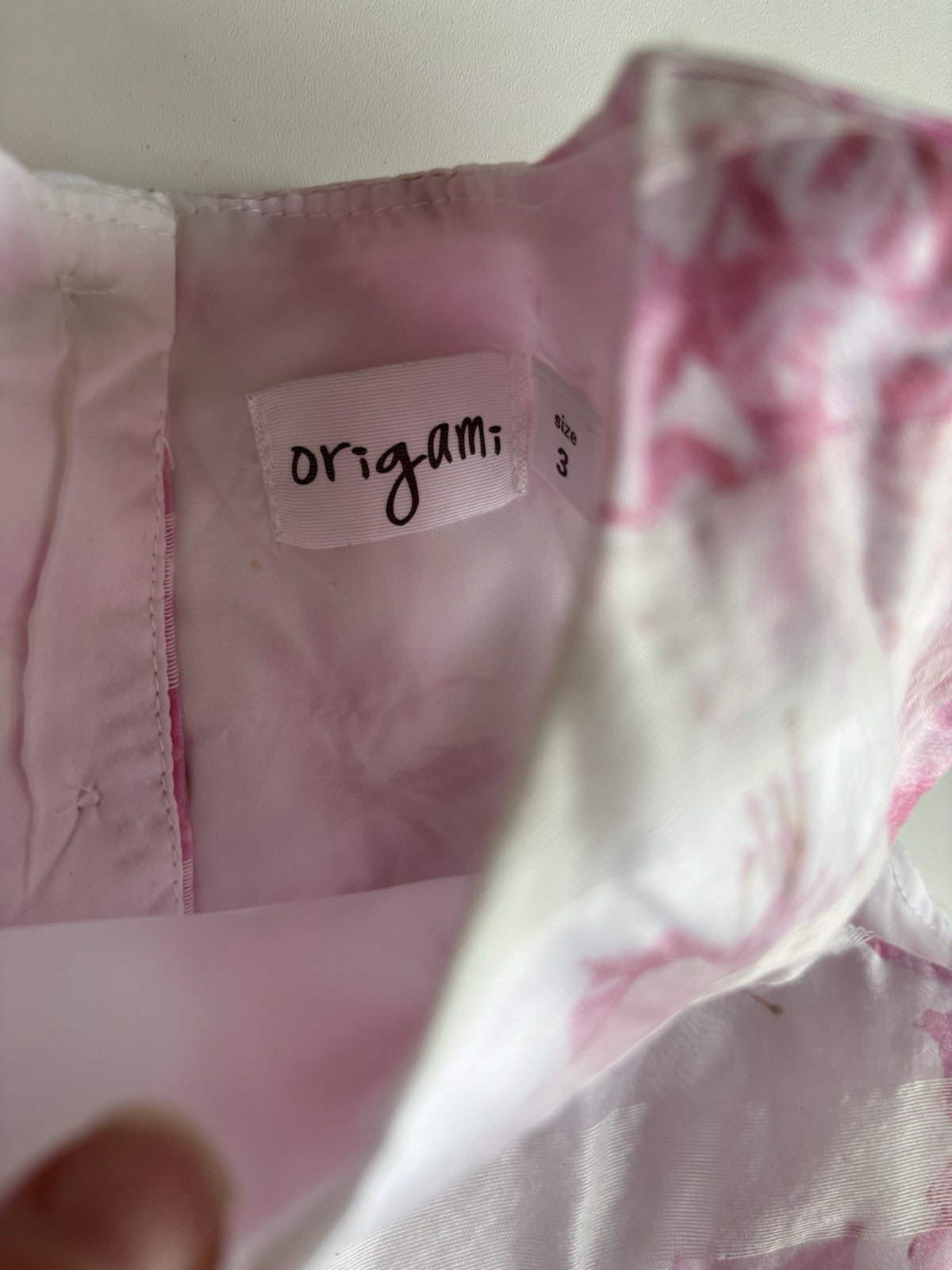 Origami kids girls toddler size 3 pink floral stripe belted party dres
