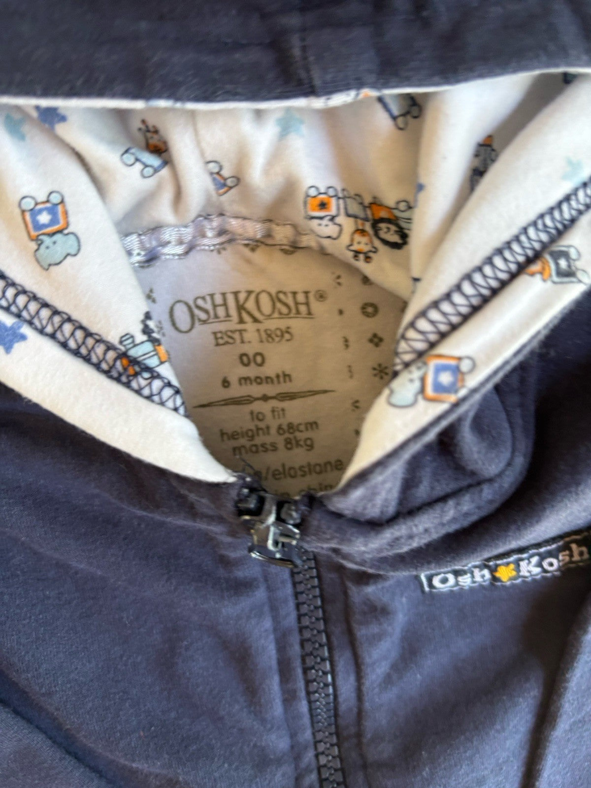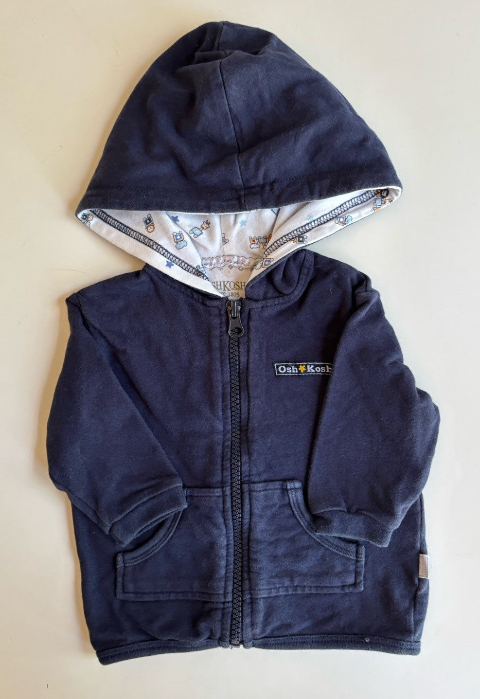 Osh Kosh B'gosh baby boy size 3-6 months navy blue hooded jumper, VGUC