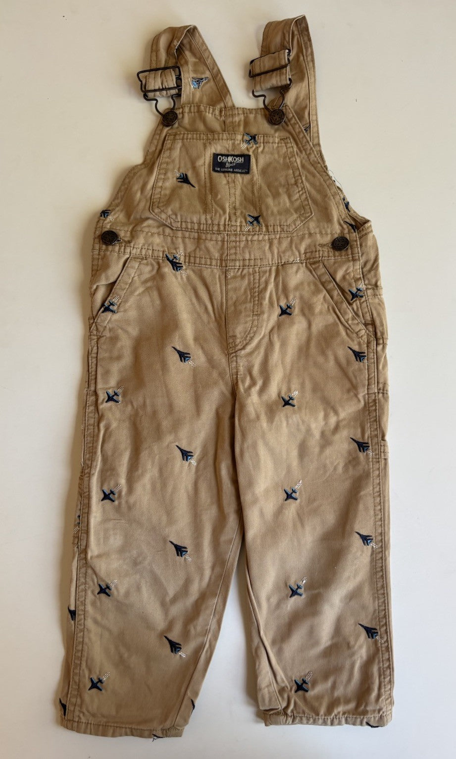 Osh Kosh b'gosh kids boys toddler size 2 brown planes overalls, VGUC