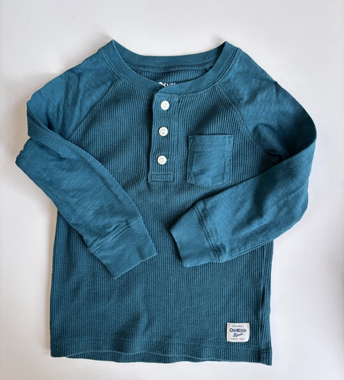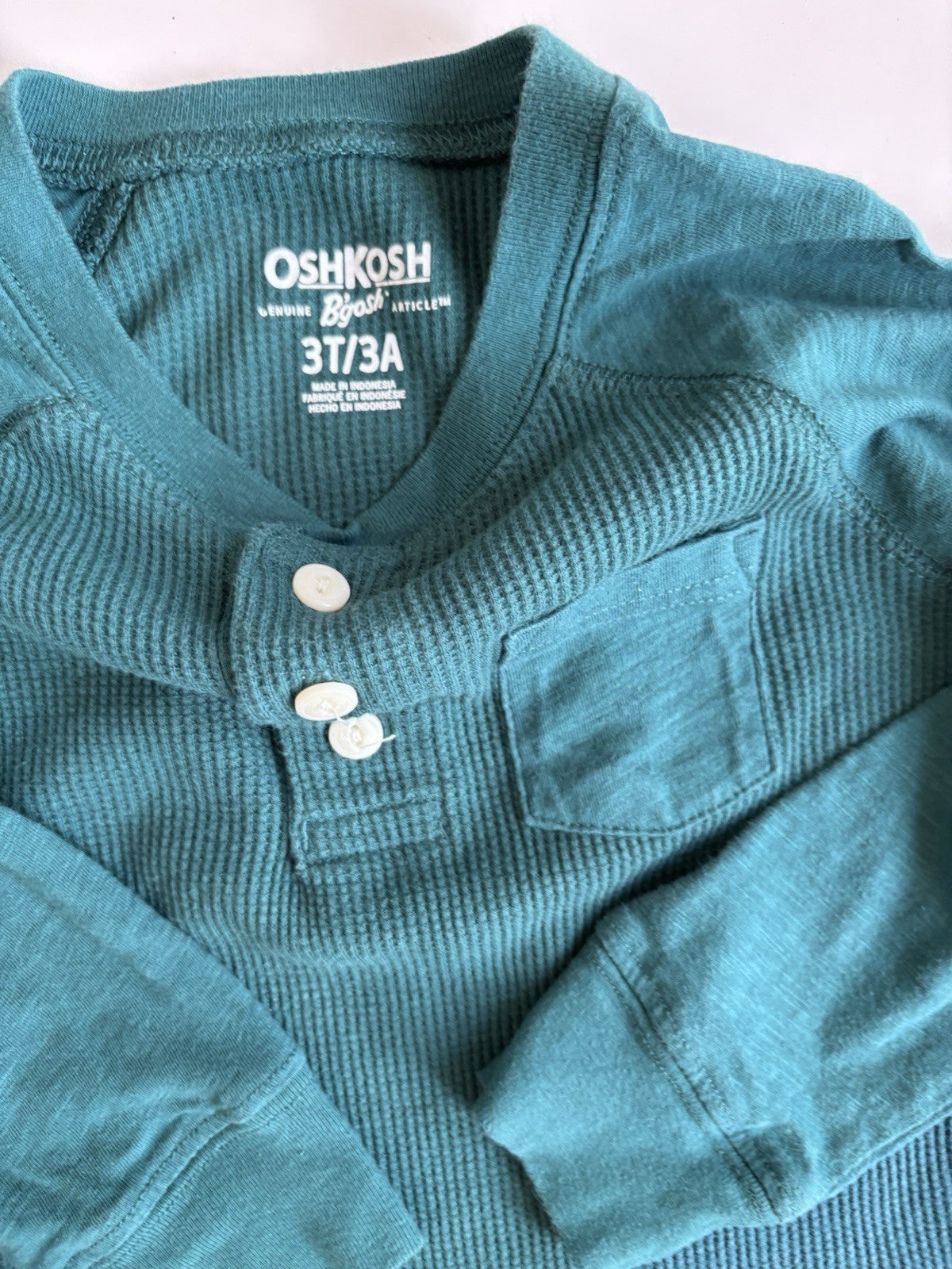 Osh Kosh B'gosh kids boys toddler size 3 green waffle long sleeve top,