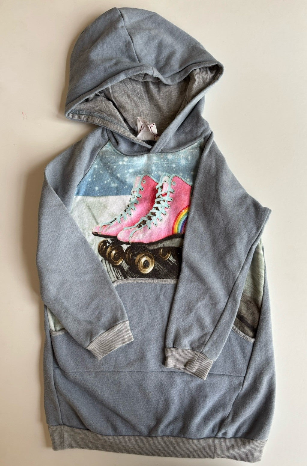 Paper Wings kids girls size 8 blue hooded jumper dress roller-skates,