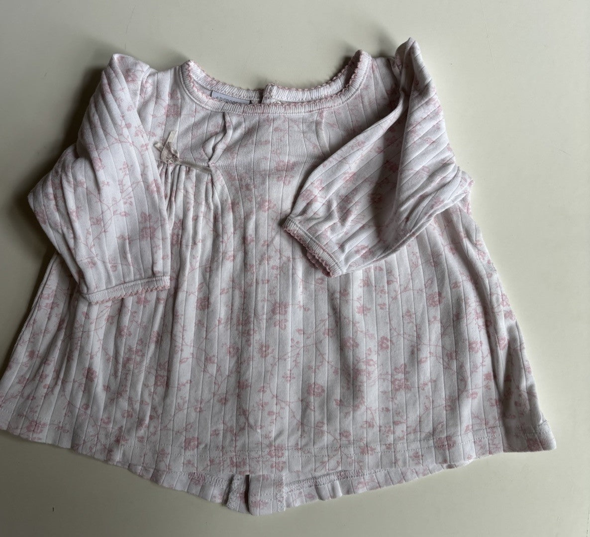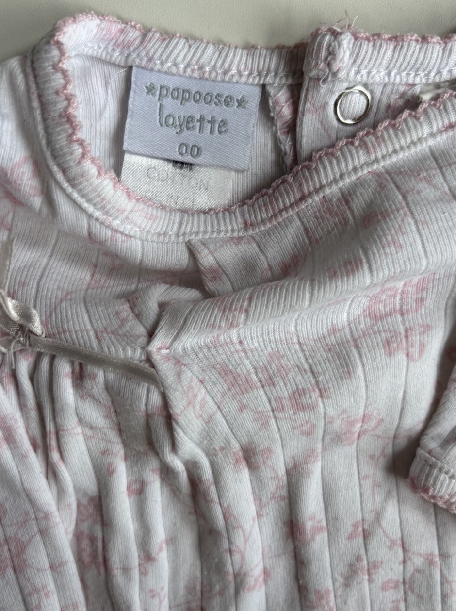 Papoose Layette baby girl size 3-6 months white pink floral dress, VGU