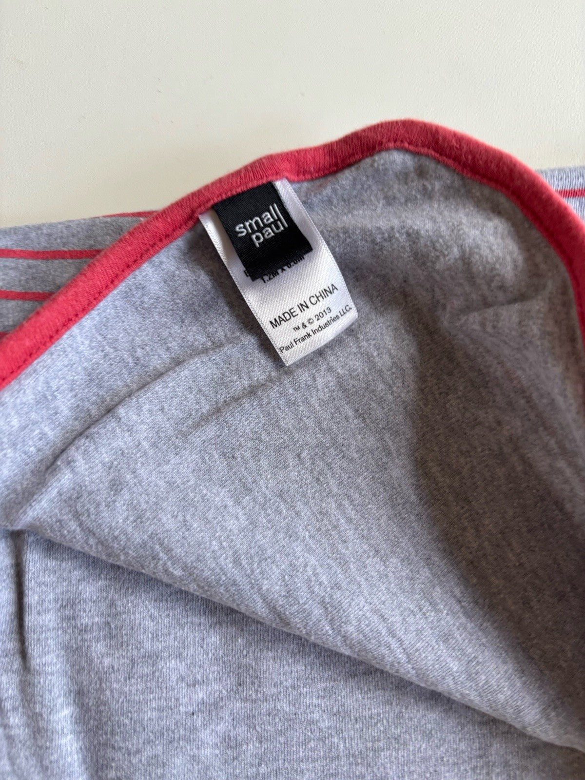 Paul Frank Small Paul baby grey pink stripe cotton bunny rug 1.2mx800cms, VGUC