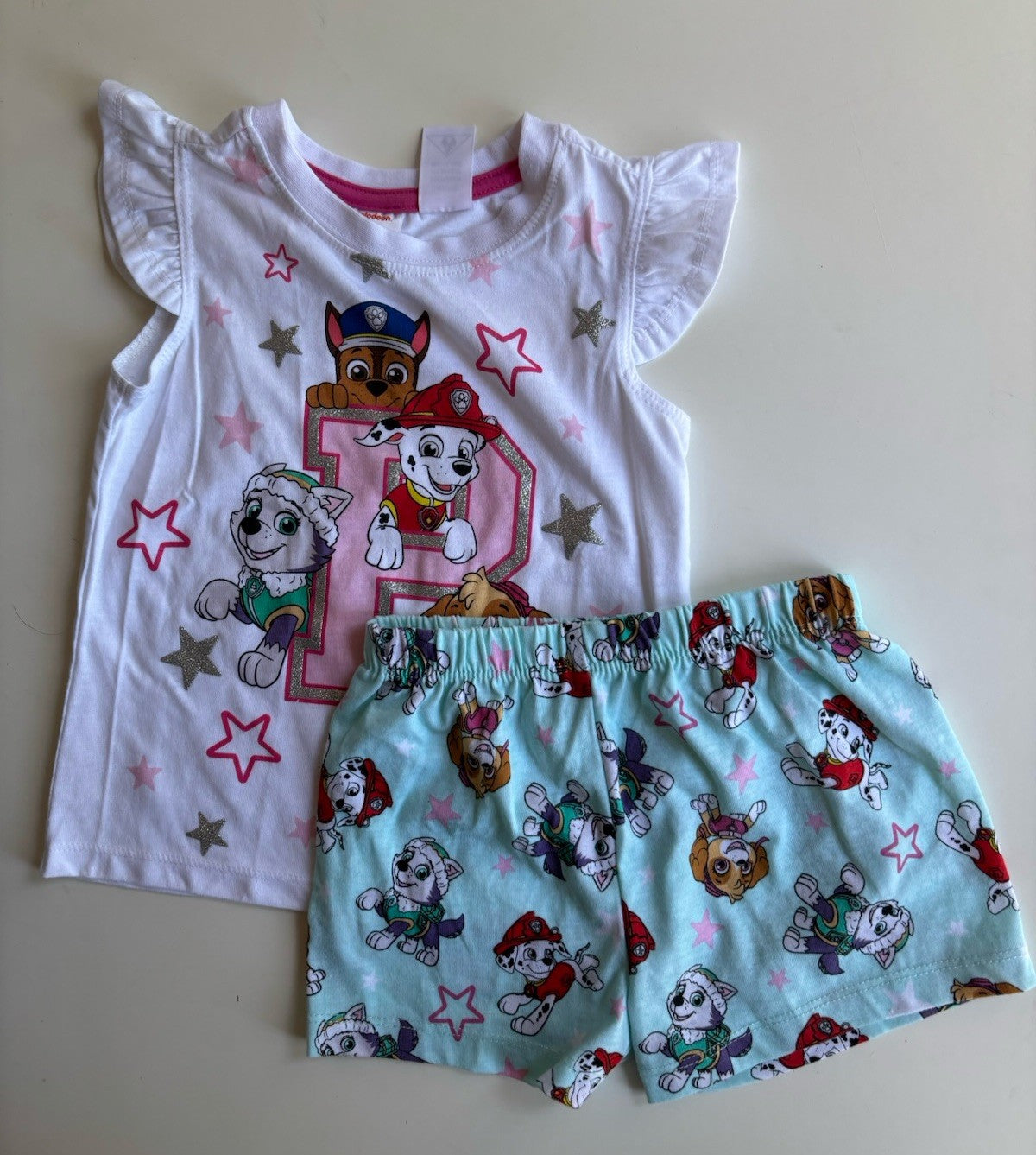 Paw Patrol kids girls toddler size 3 white blue stars PJ set, VGUC