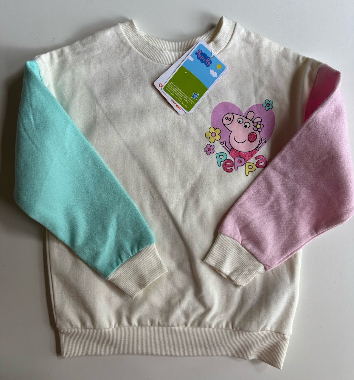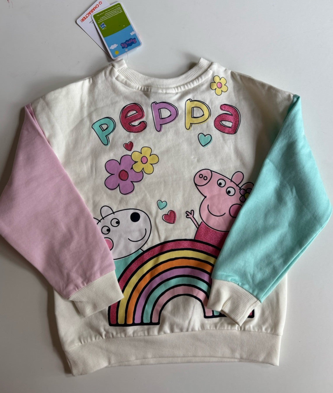 Peppa Pig kids girls size 4-5 years white blue pink rainbow jumper, BN