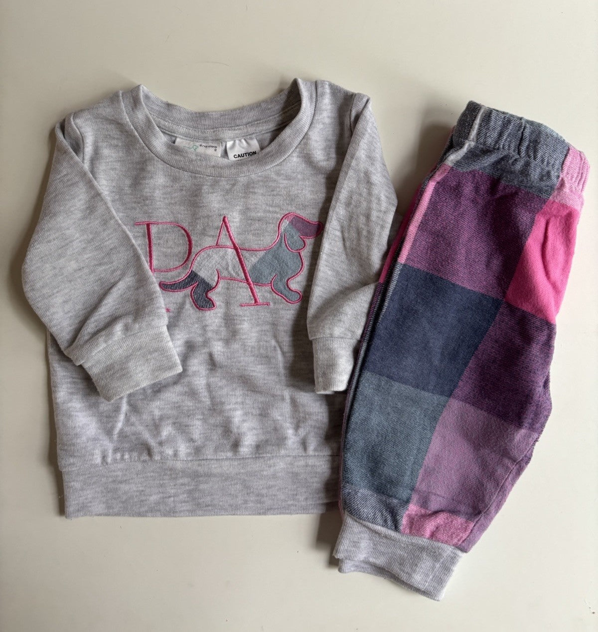 Peter Alexander baby girl size 6-12 months grey purple PJ set, GUC