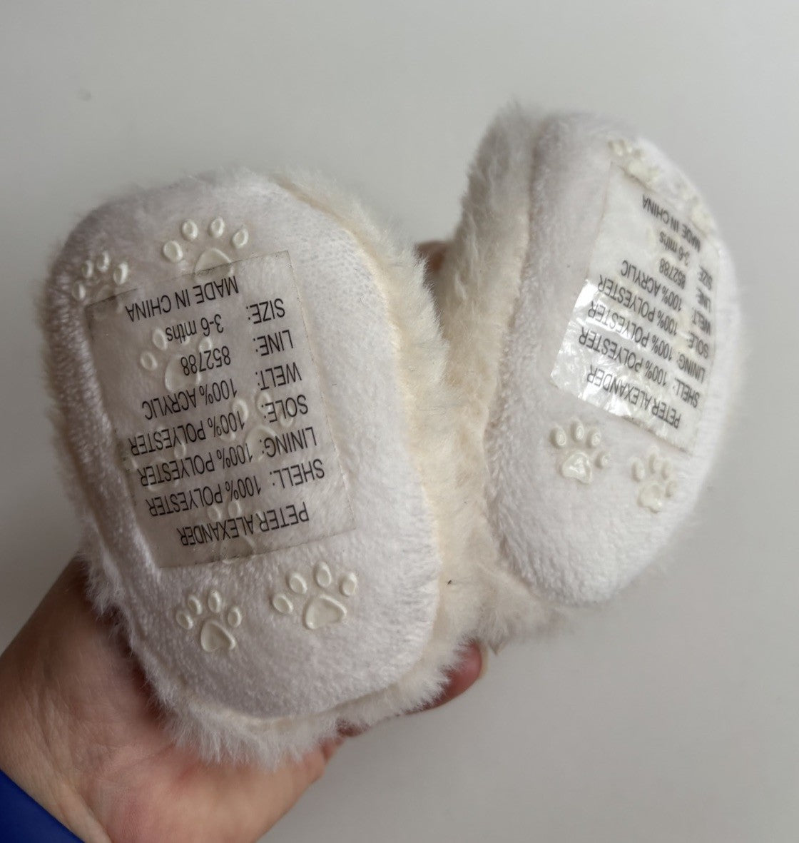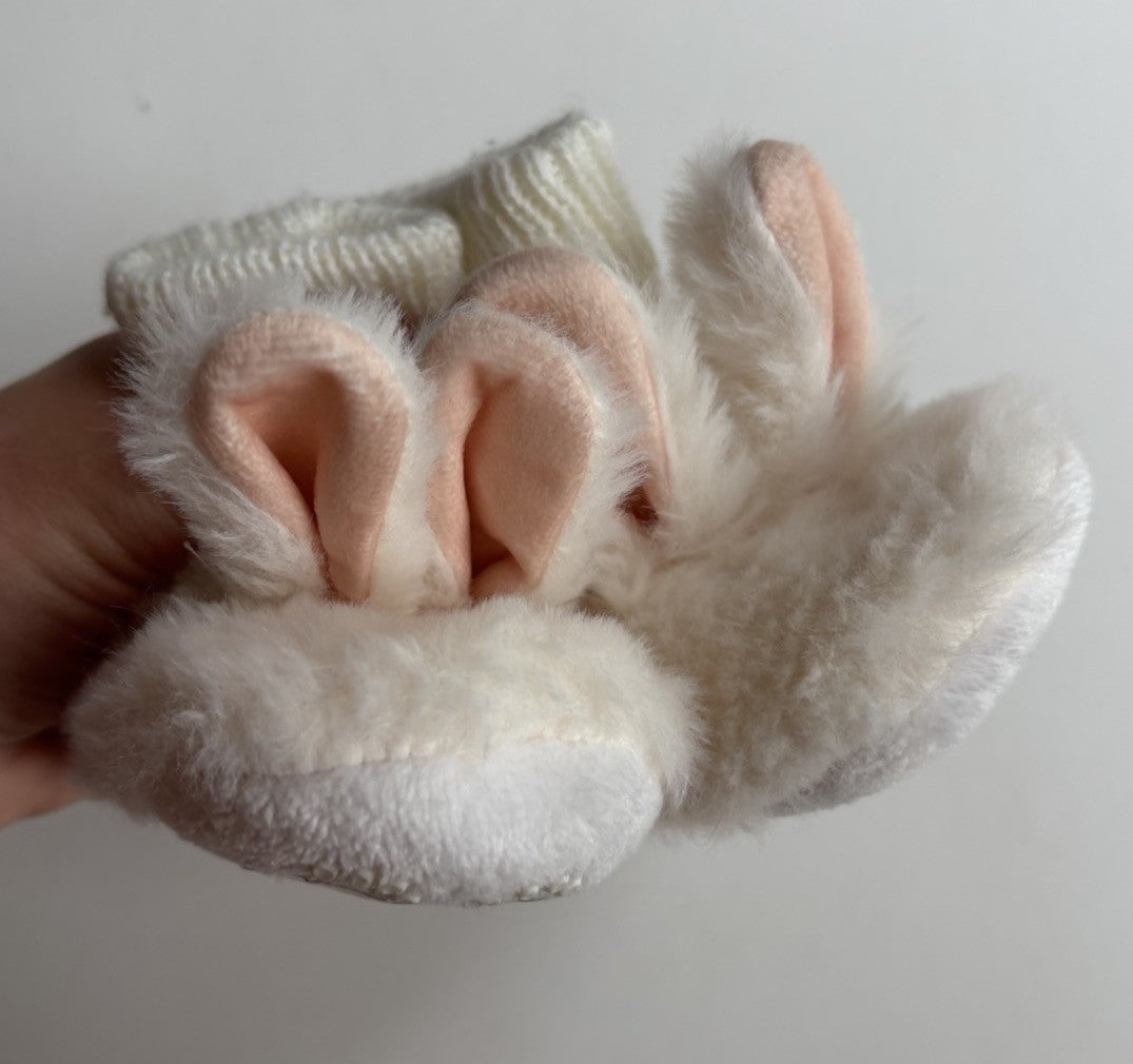 Peter Alexander baby size 3-6 months white fluffy bunnies booties, BNW