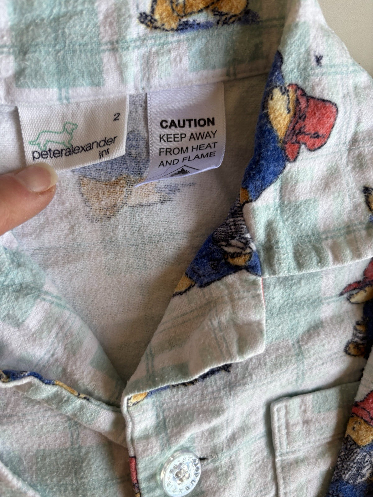 Peter Alexander x Paddington kids size 2 blue flannel PJ set, VGUC