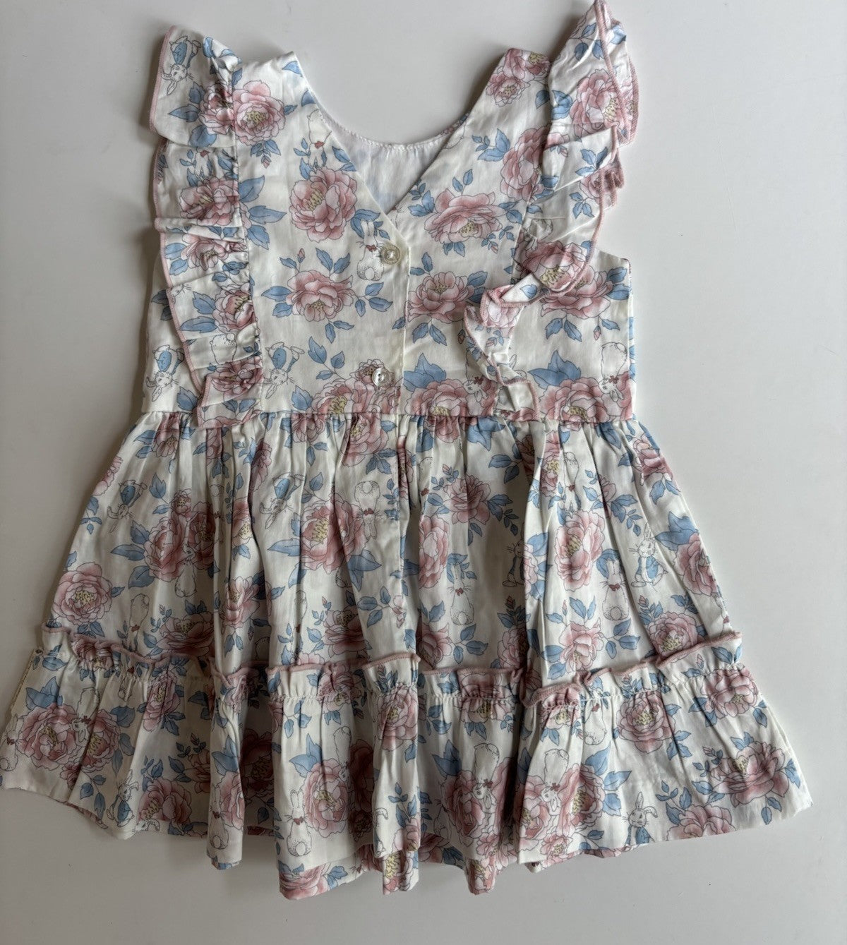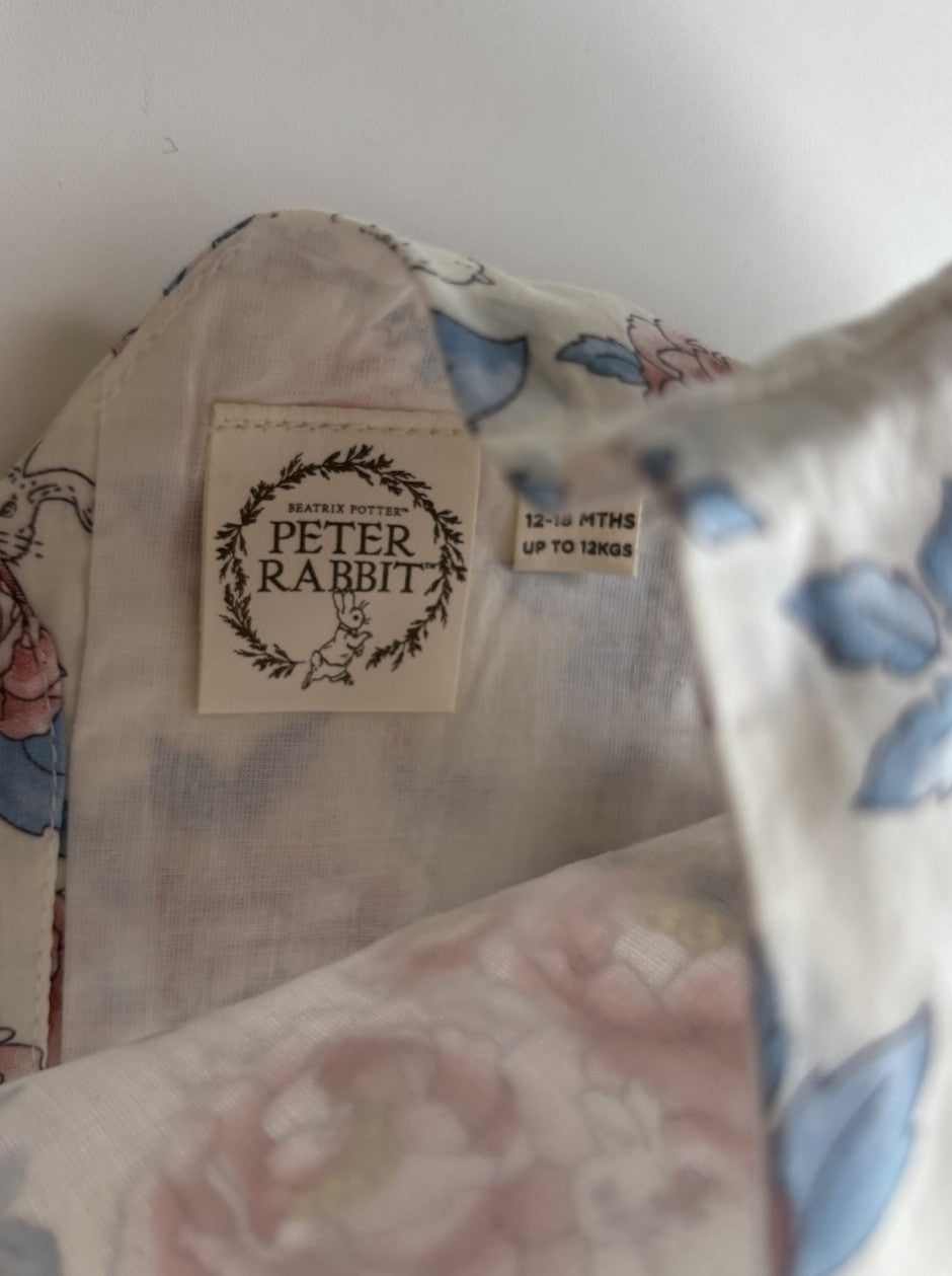 Peter Rabbit baby girl size 12-18 months pink blue floral dress, VGUC