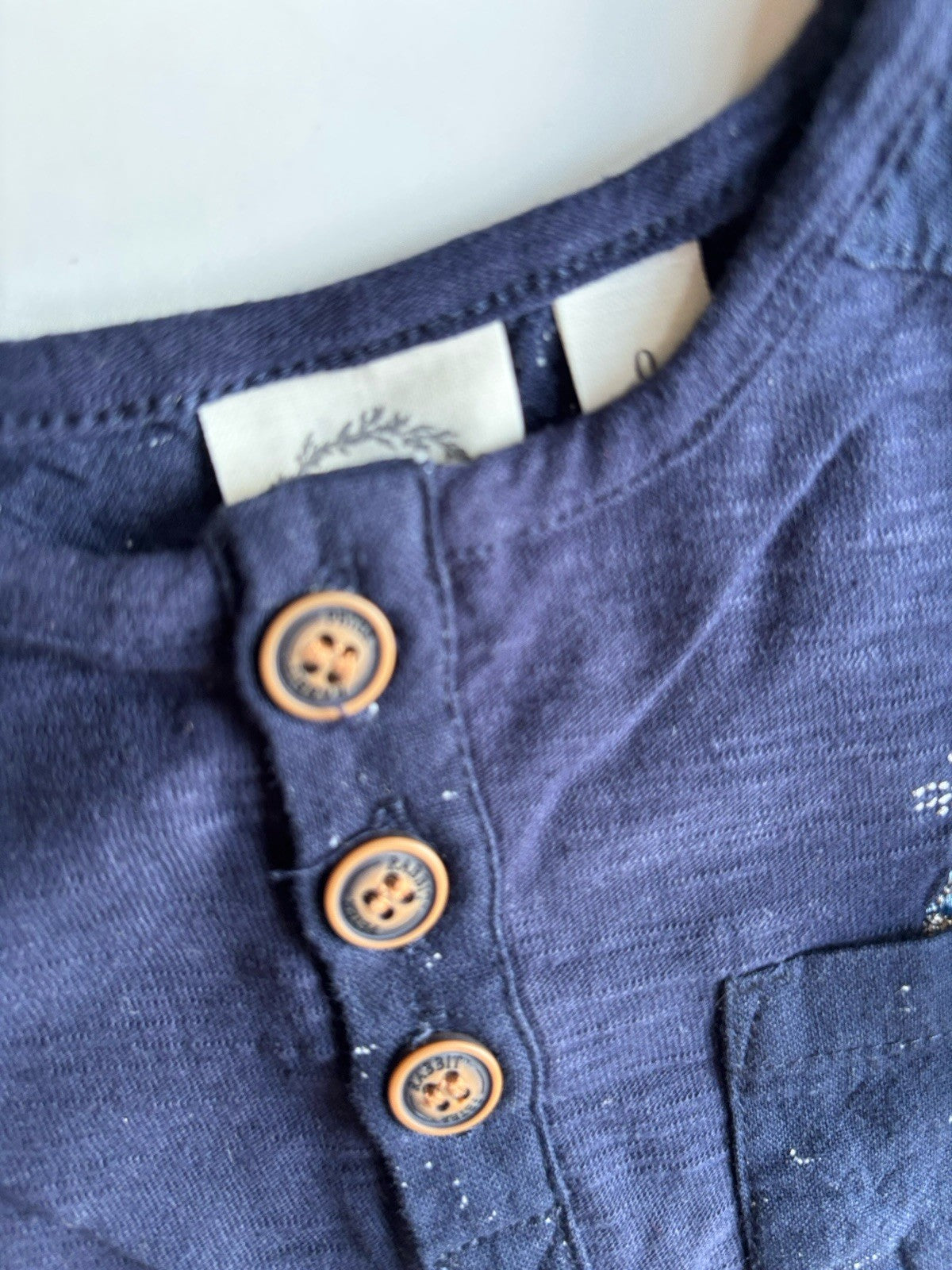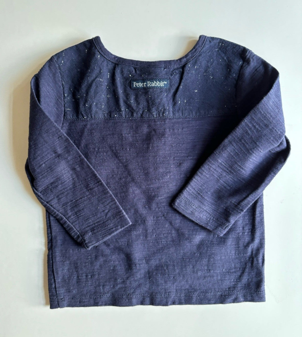 Peter Rabbit baby size 6-12 months navy blue henley rabbit top, VGUC